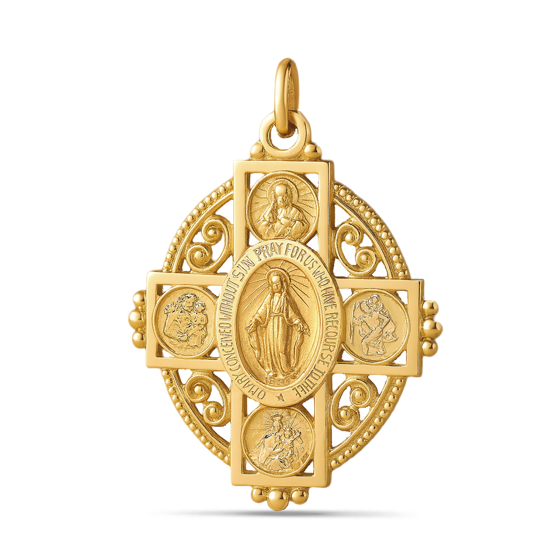 14K Gold Four-Way Cross Pendant – Catholic Religious Medal