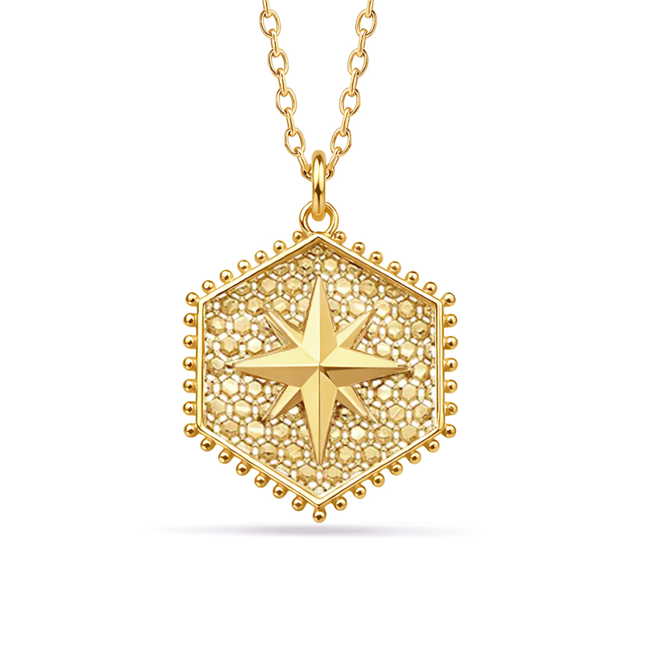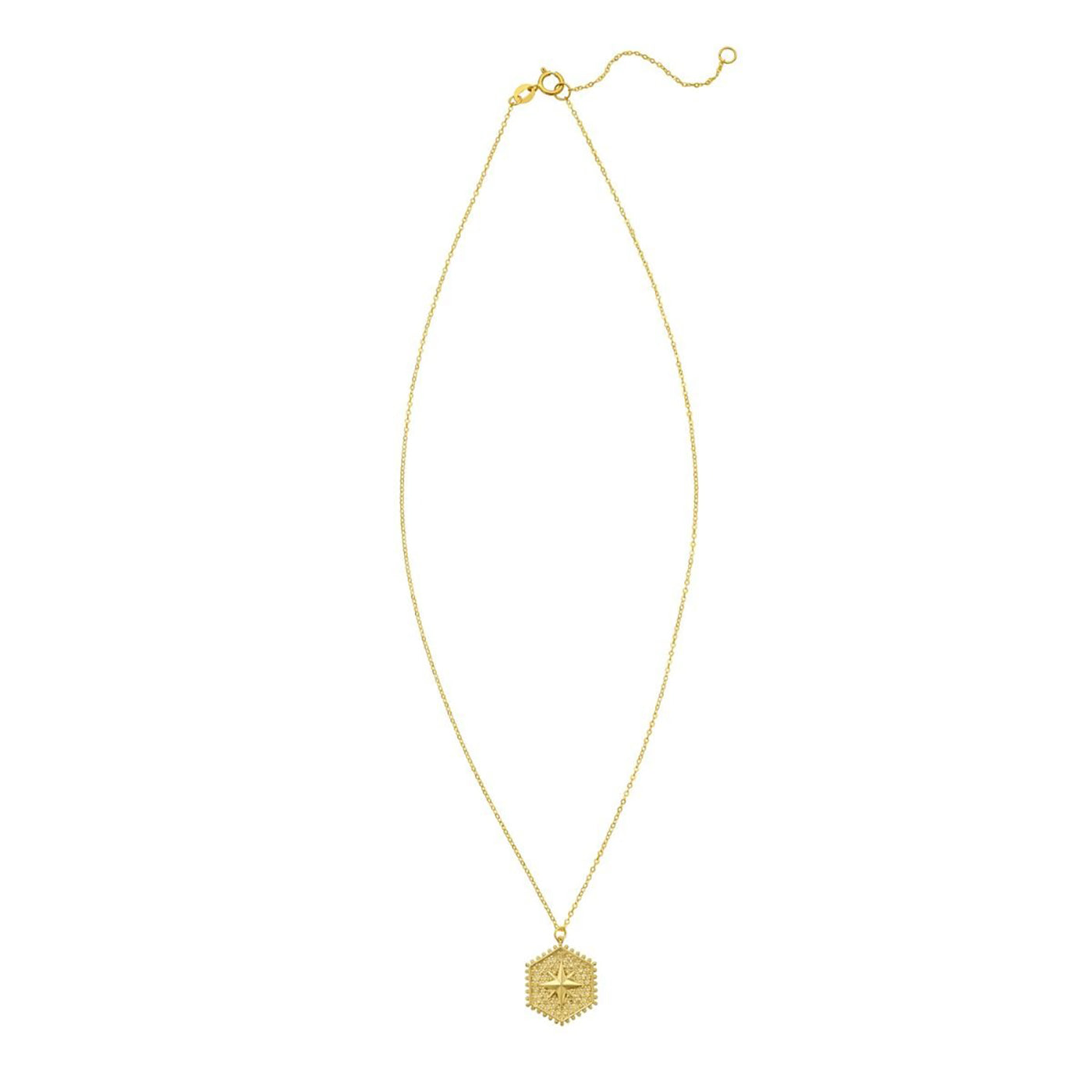 14K Gold Dainty Hexagonal North Star Necklace
