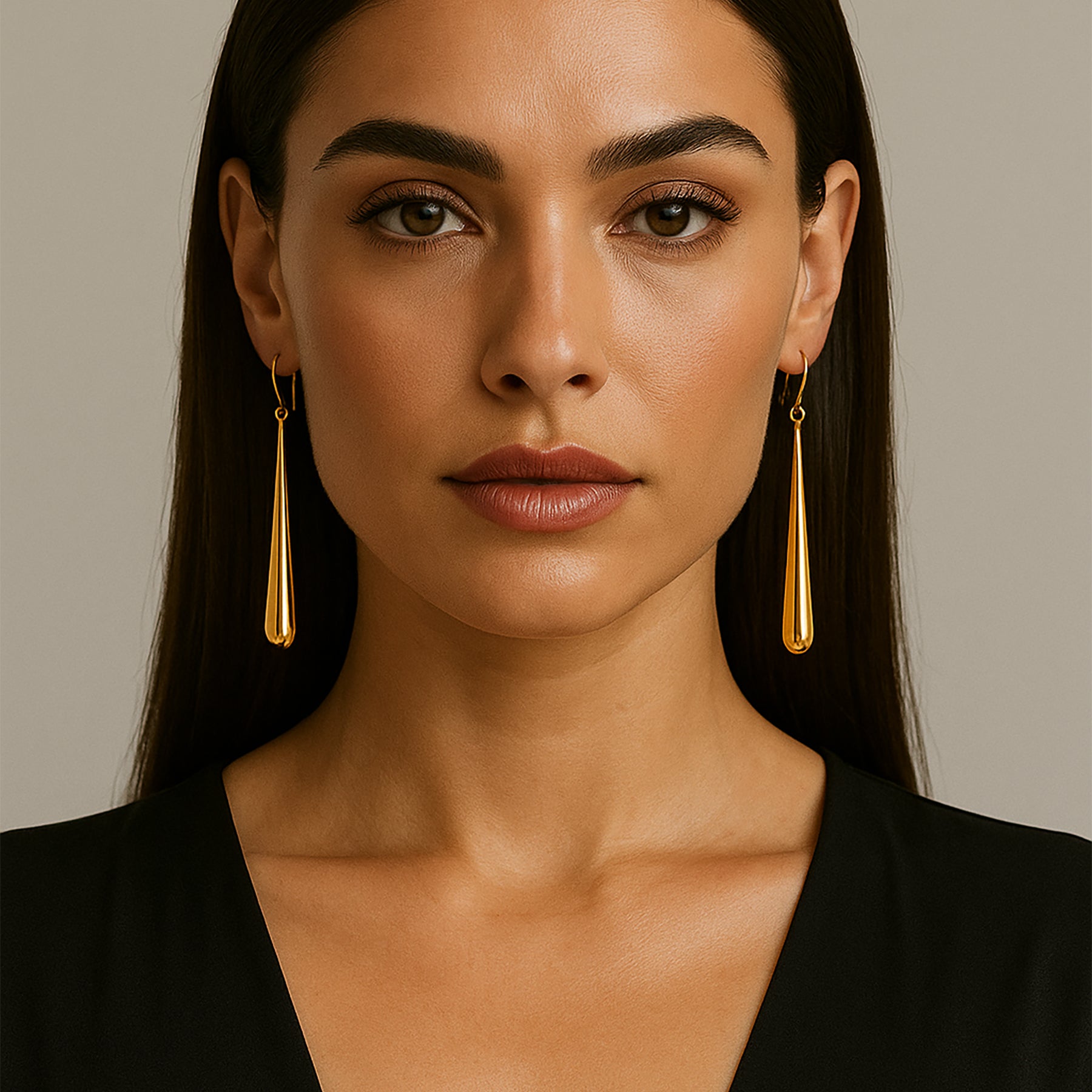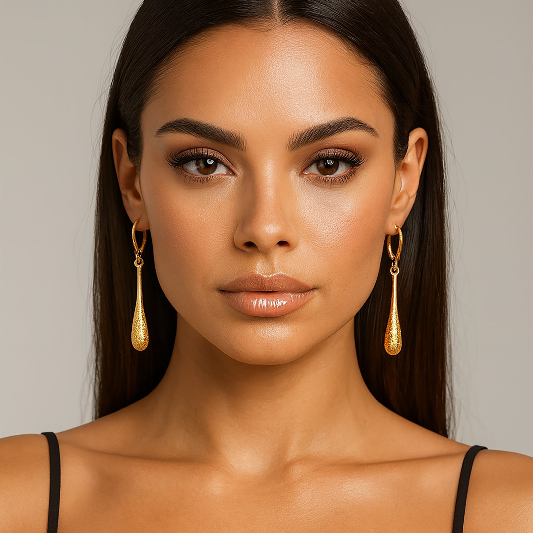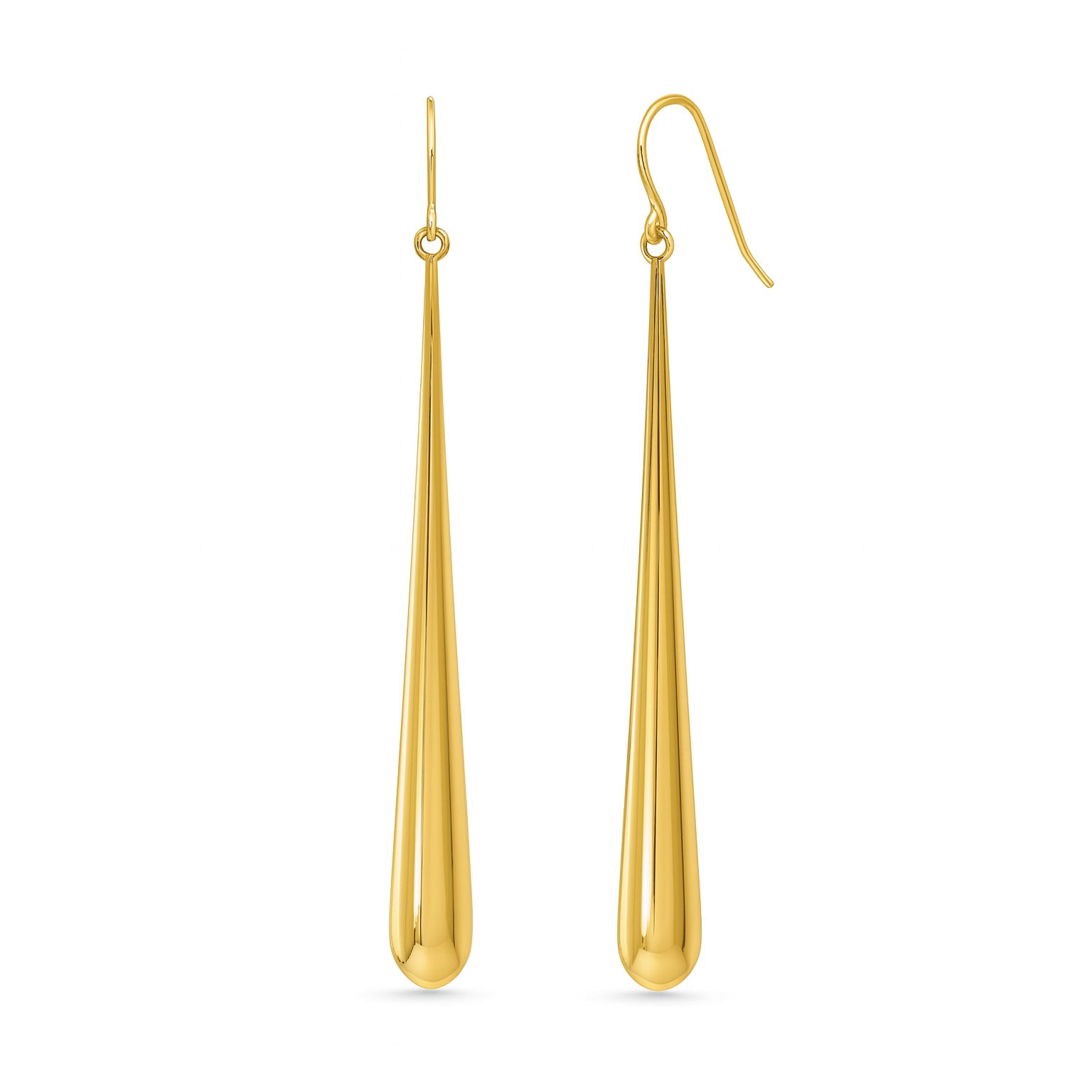 14K Solid Gold Teardrop Dangle Earrings | Long Drop Earrings