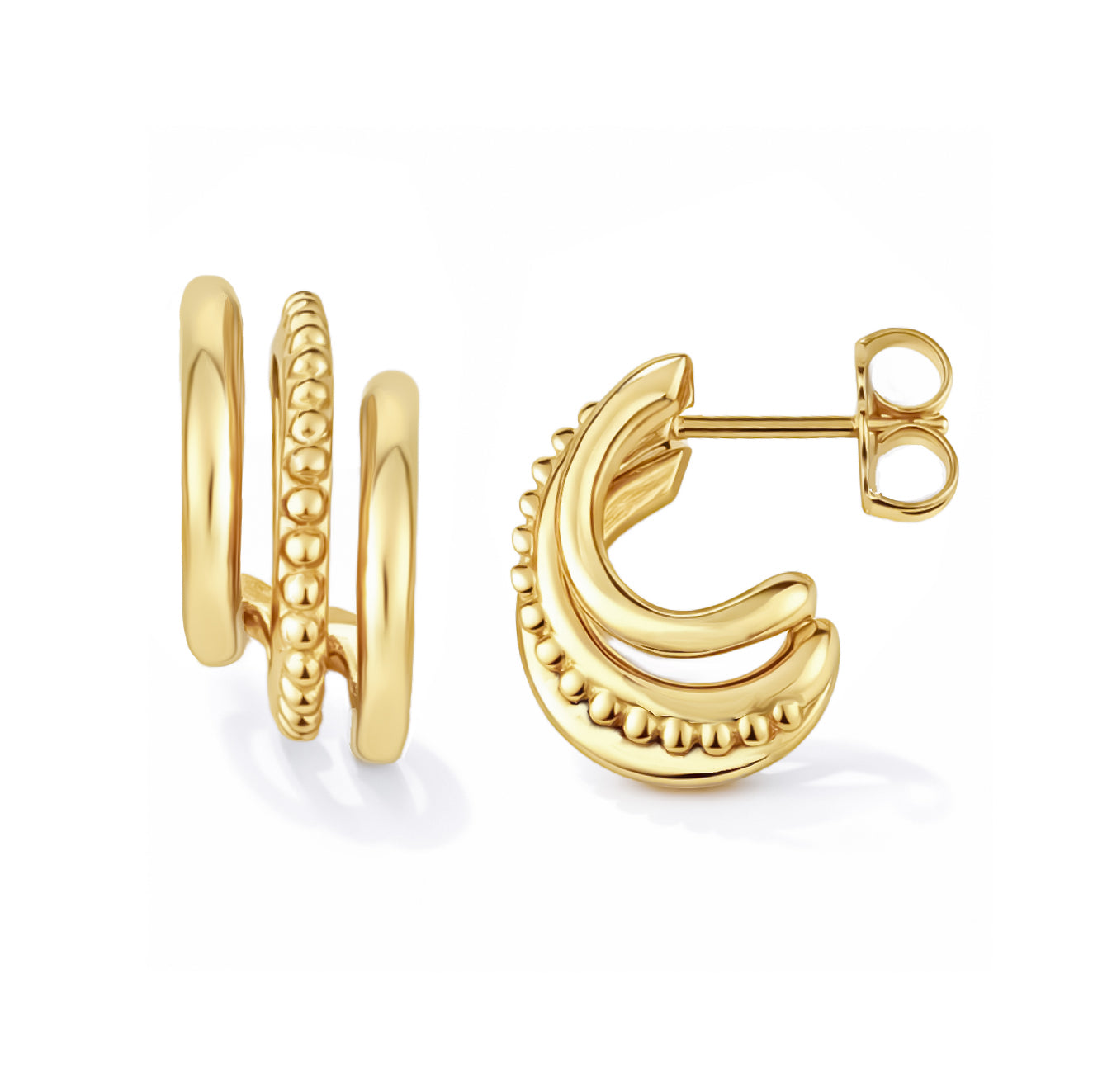 14k Solid Gold Triple J Hoop Earrings for Women