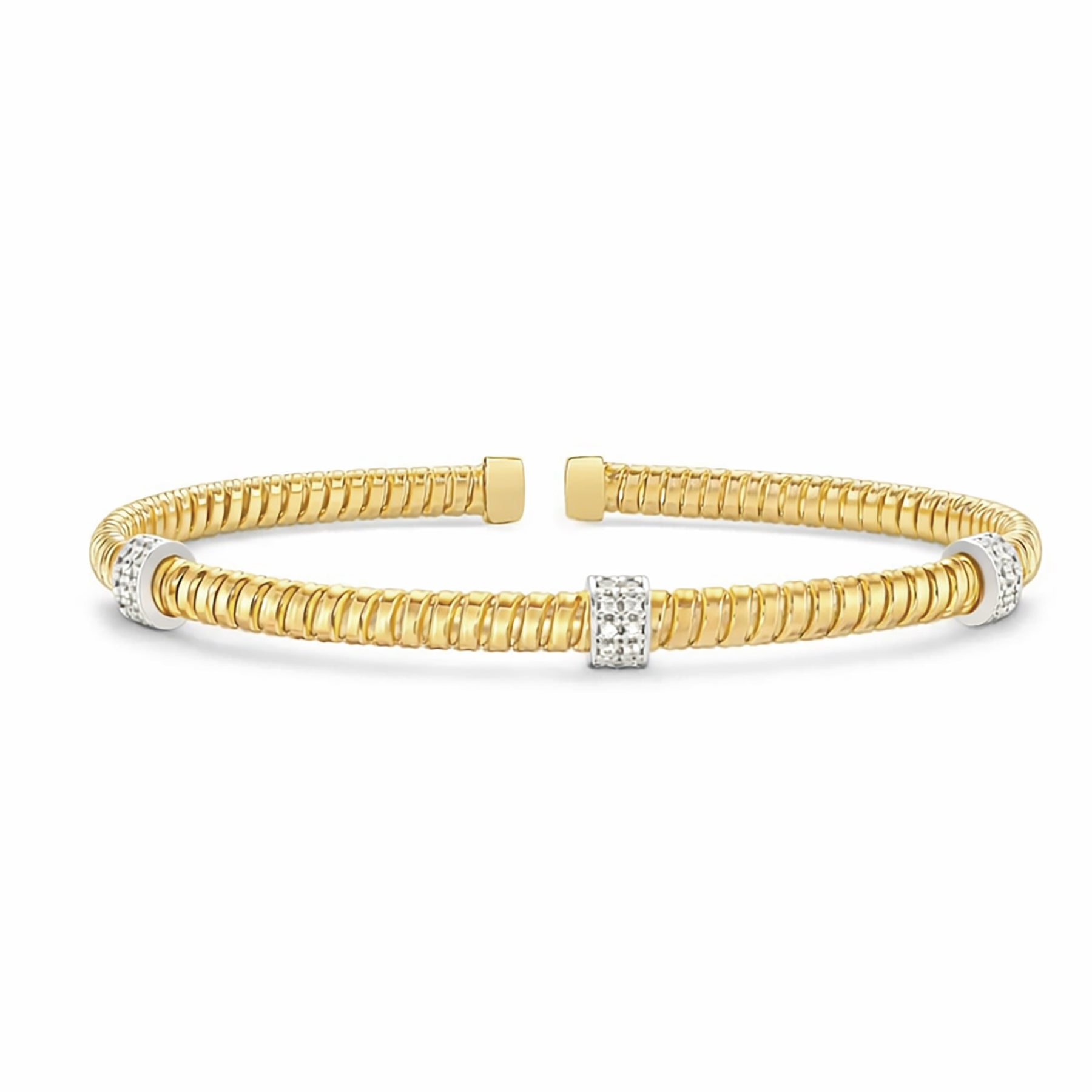 14K Solid Gold Three Station Diamond Tubogas Bracelet