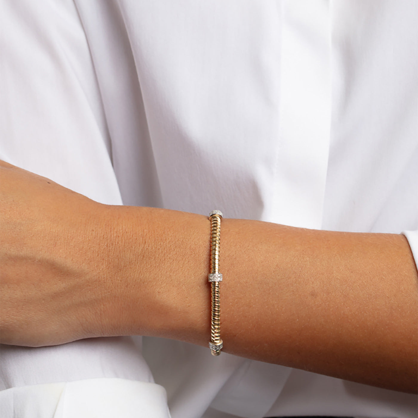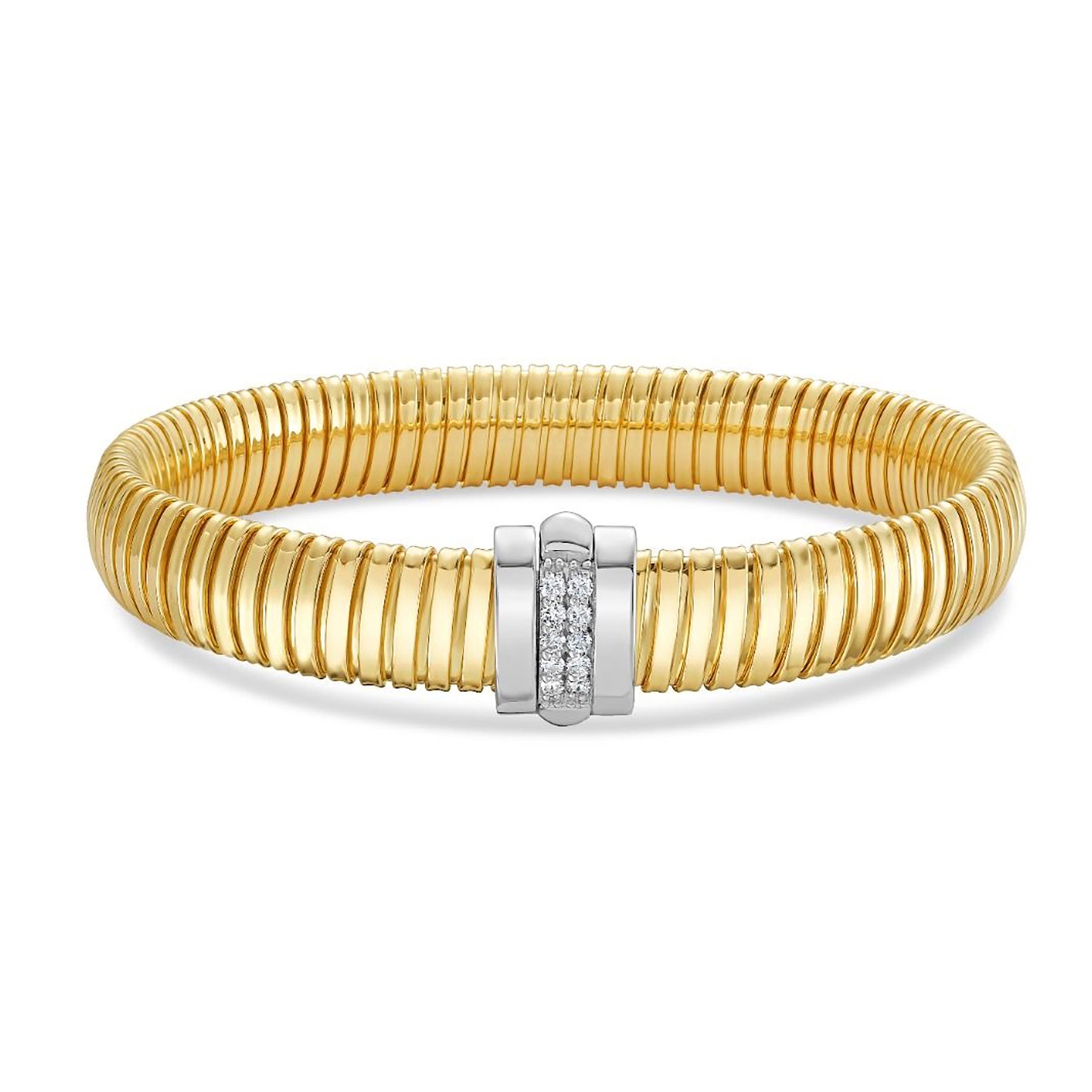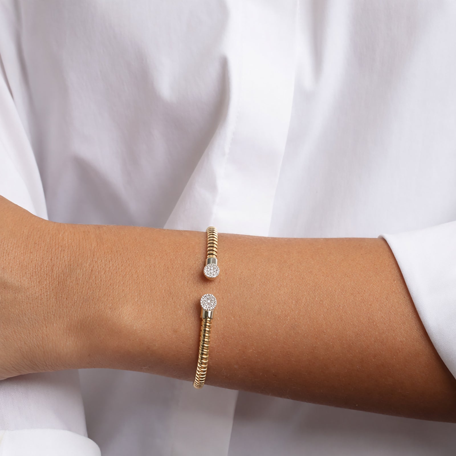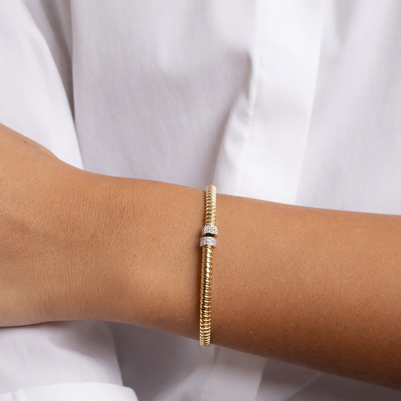 14k Gold Diamond Tubogas Bracelet Flexible Coil Bangle