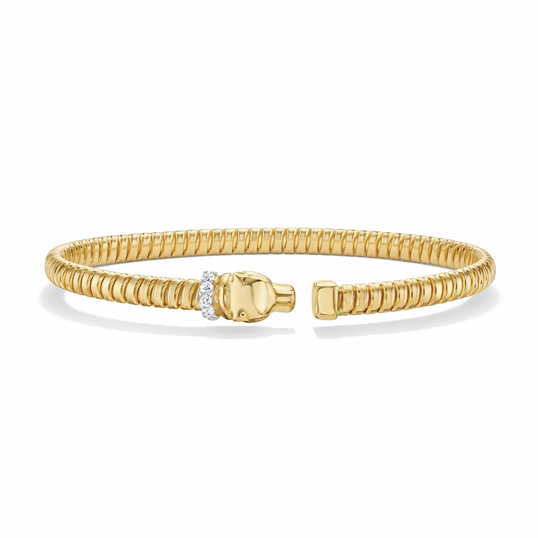 14k Gold Diamond Tubogas Panther Bracelet Flexible Coil Bangle