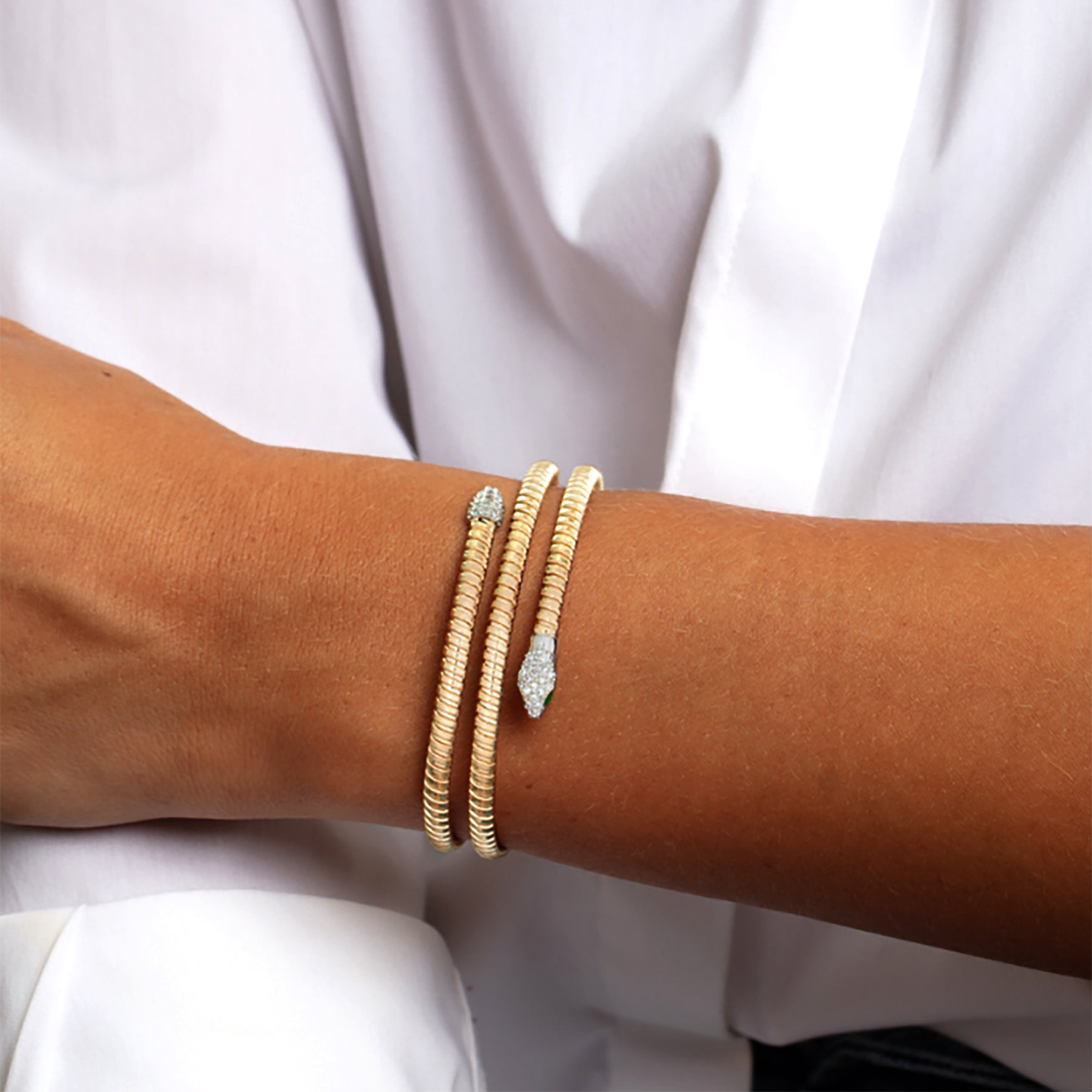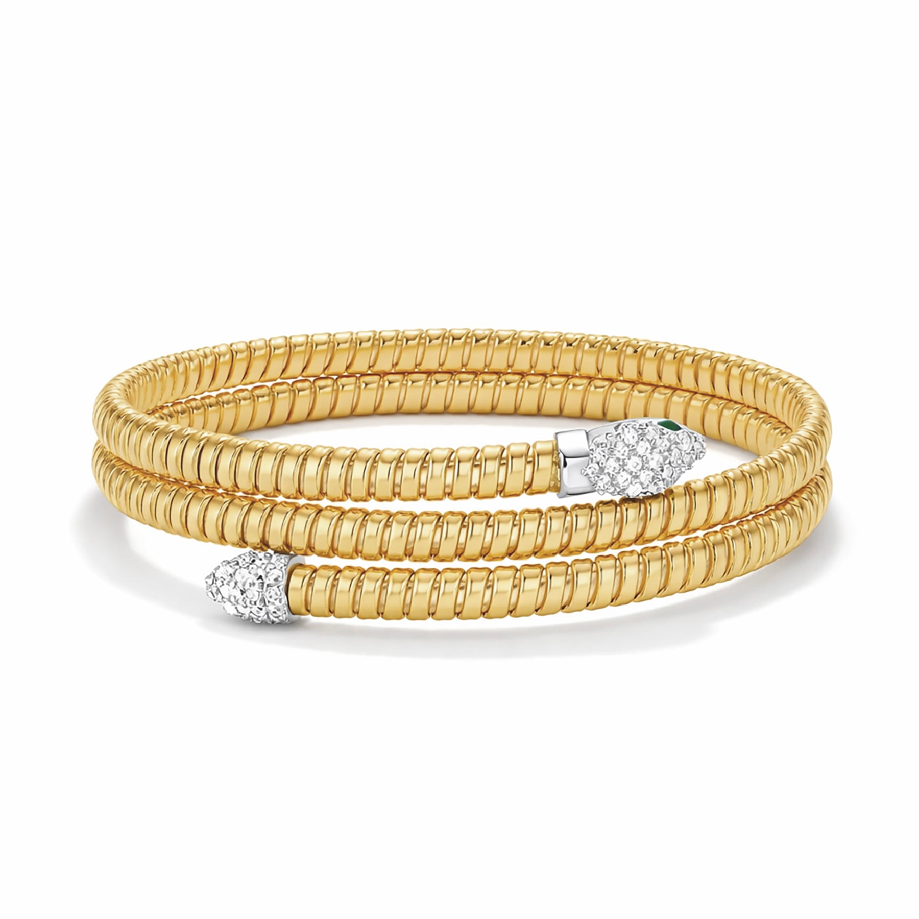 14K Gold Diamond Snake Tubogas Bracelet – Flexible Wrap Around Coil Bangle