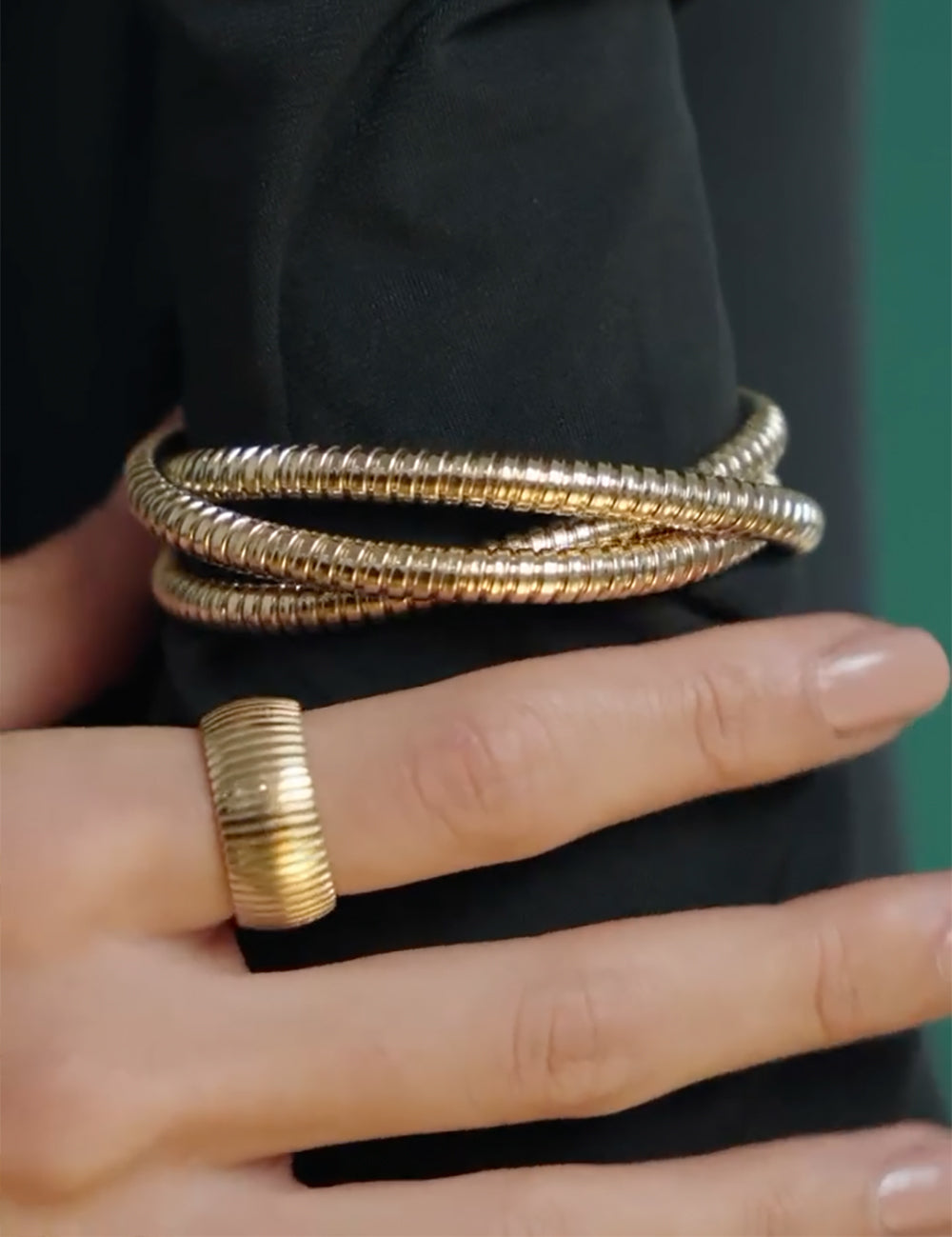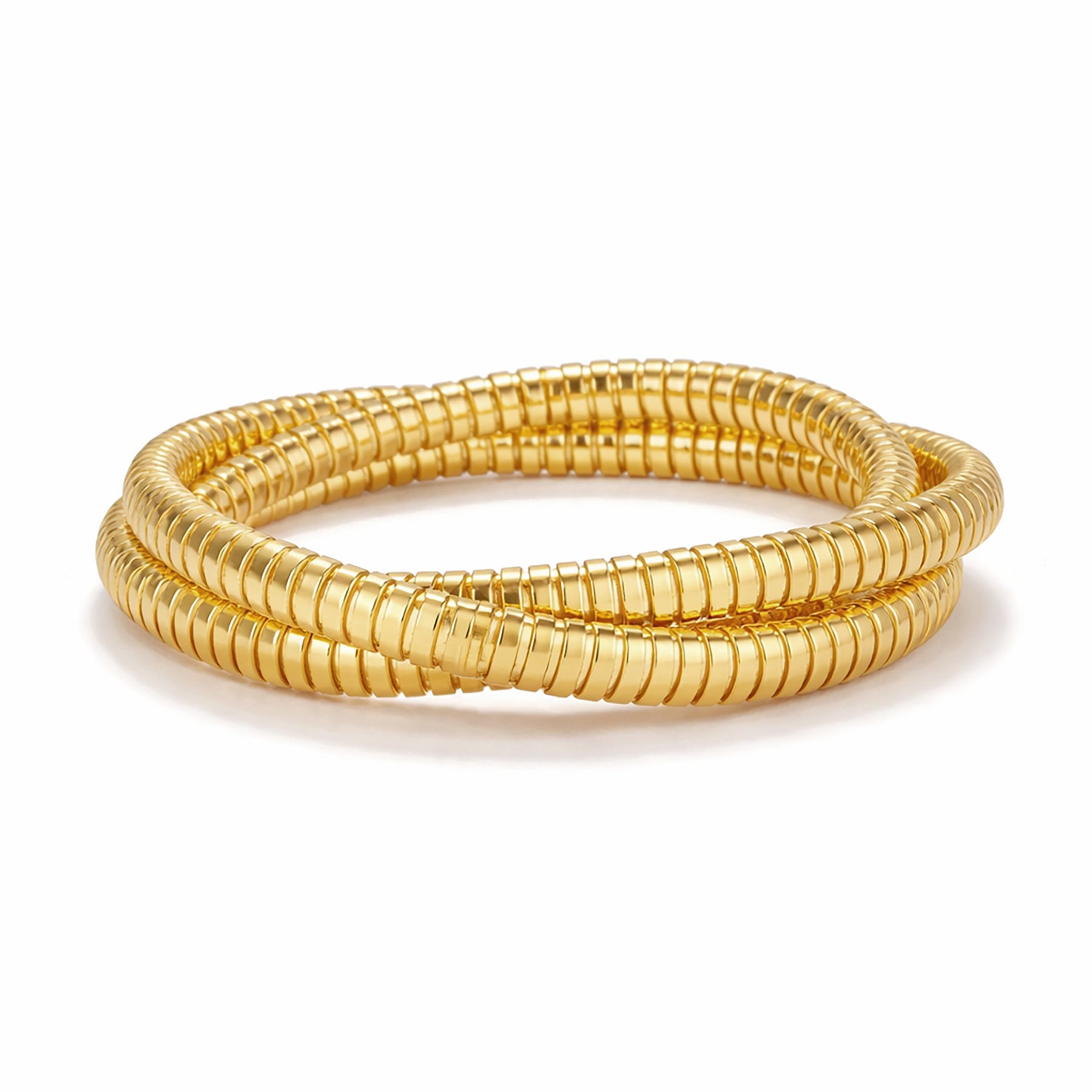 14k Gold Triple Tubogas Bracelet, Flexible Coil Bangle
