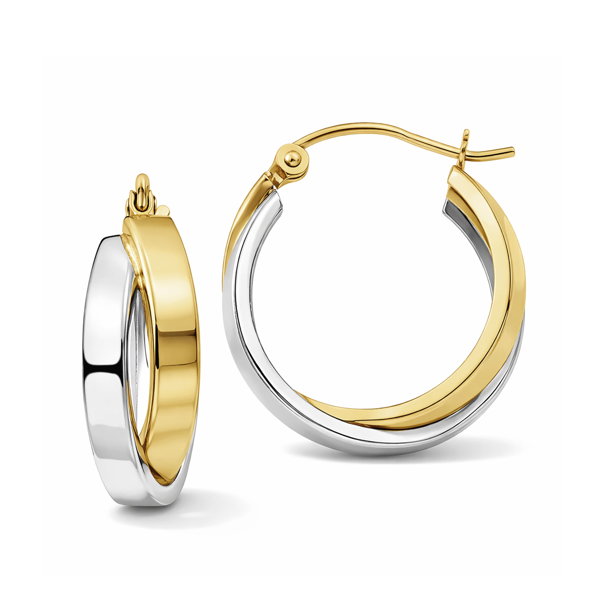 10K Solid Gold Two-Tone Twisted Hoop Earrings for Women