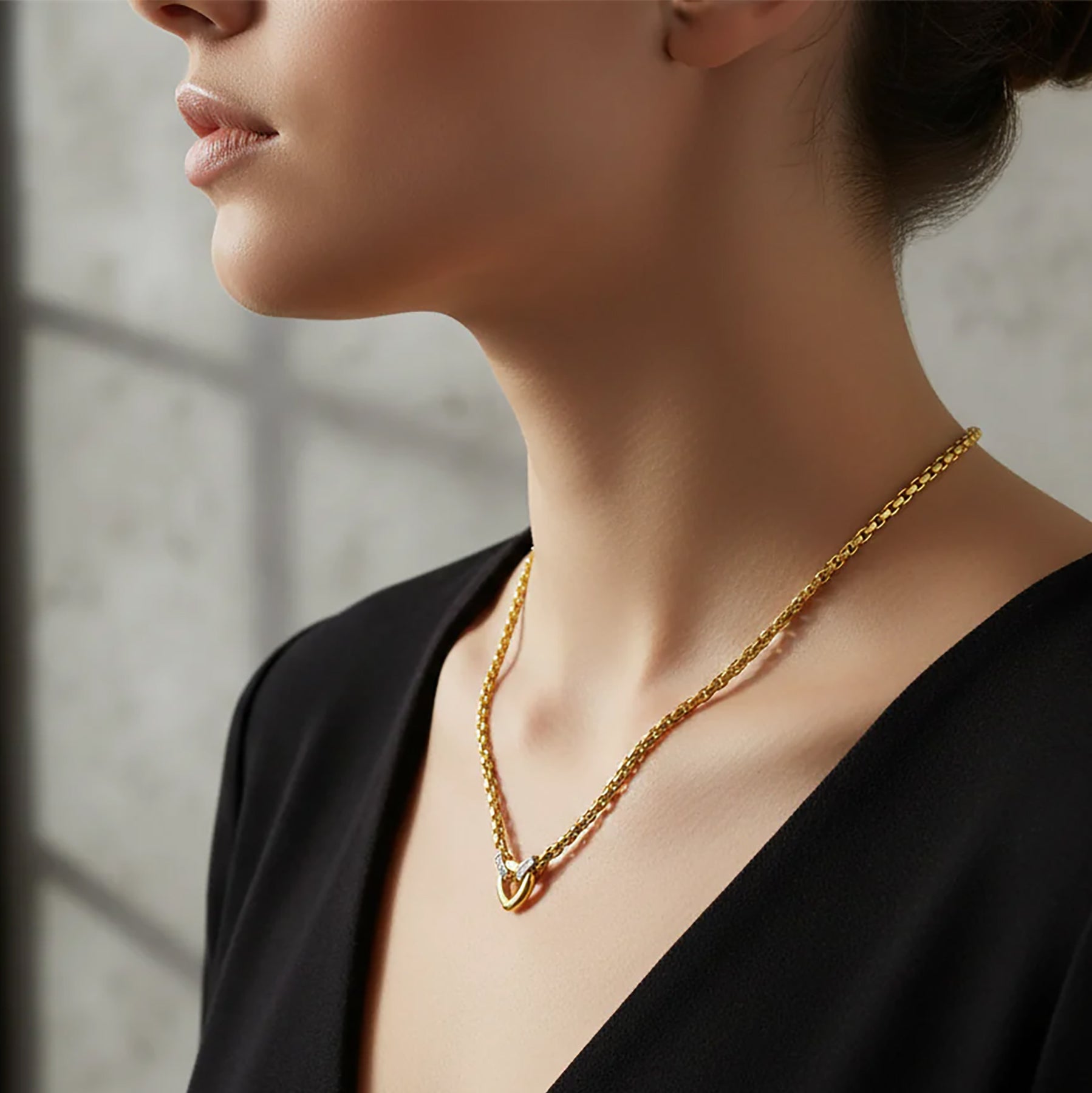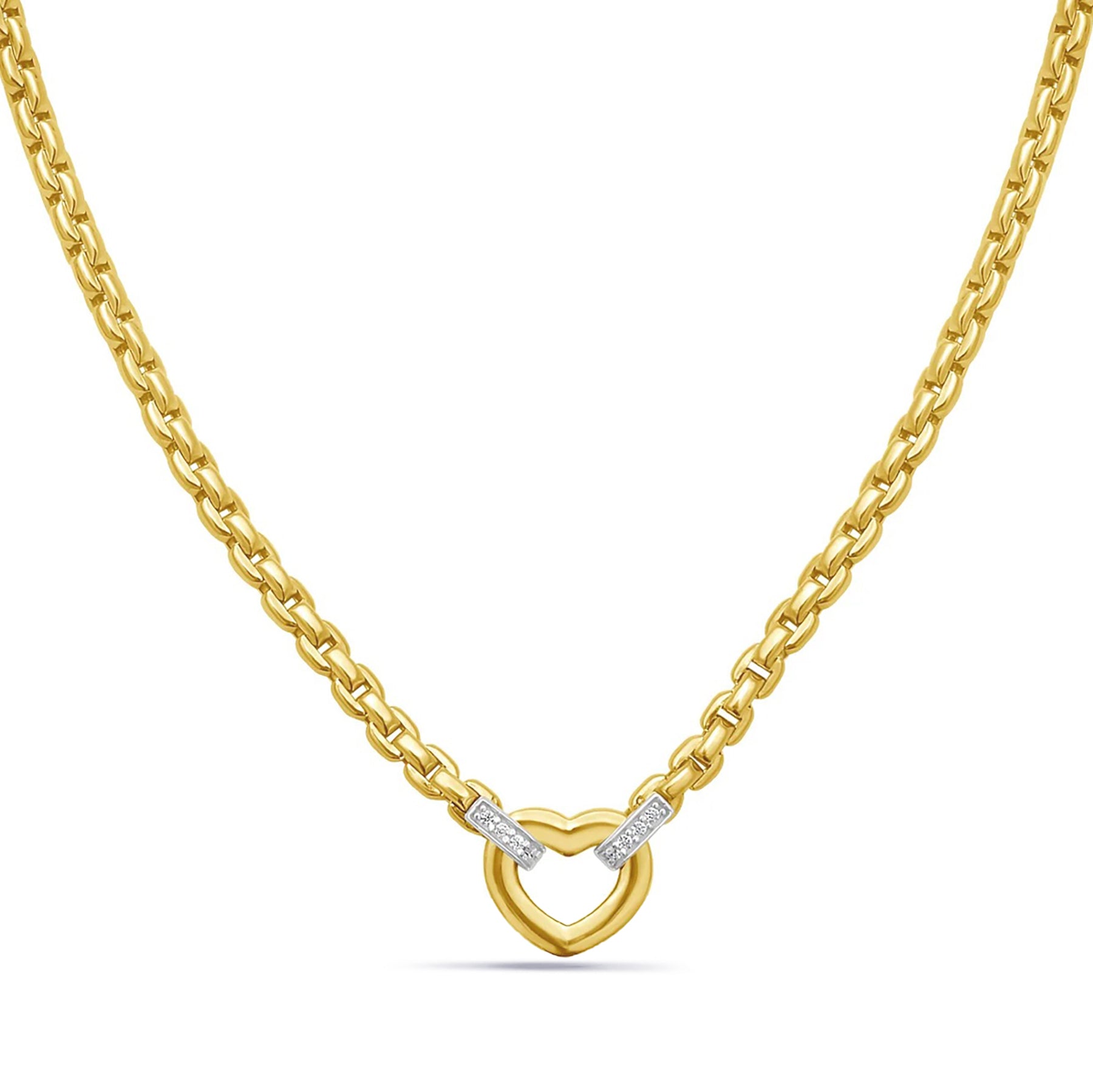 14K Solid Gold Diamond Accented Venetian Box Chain Heart Necklace