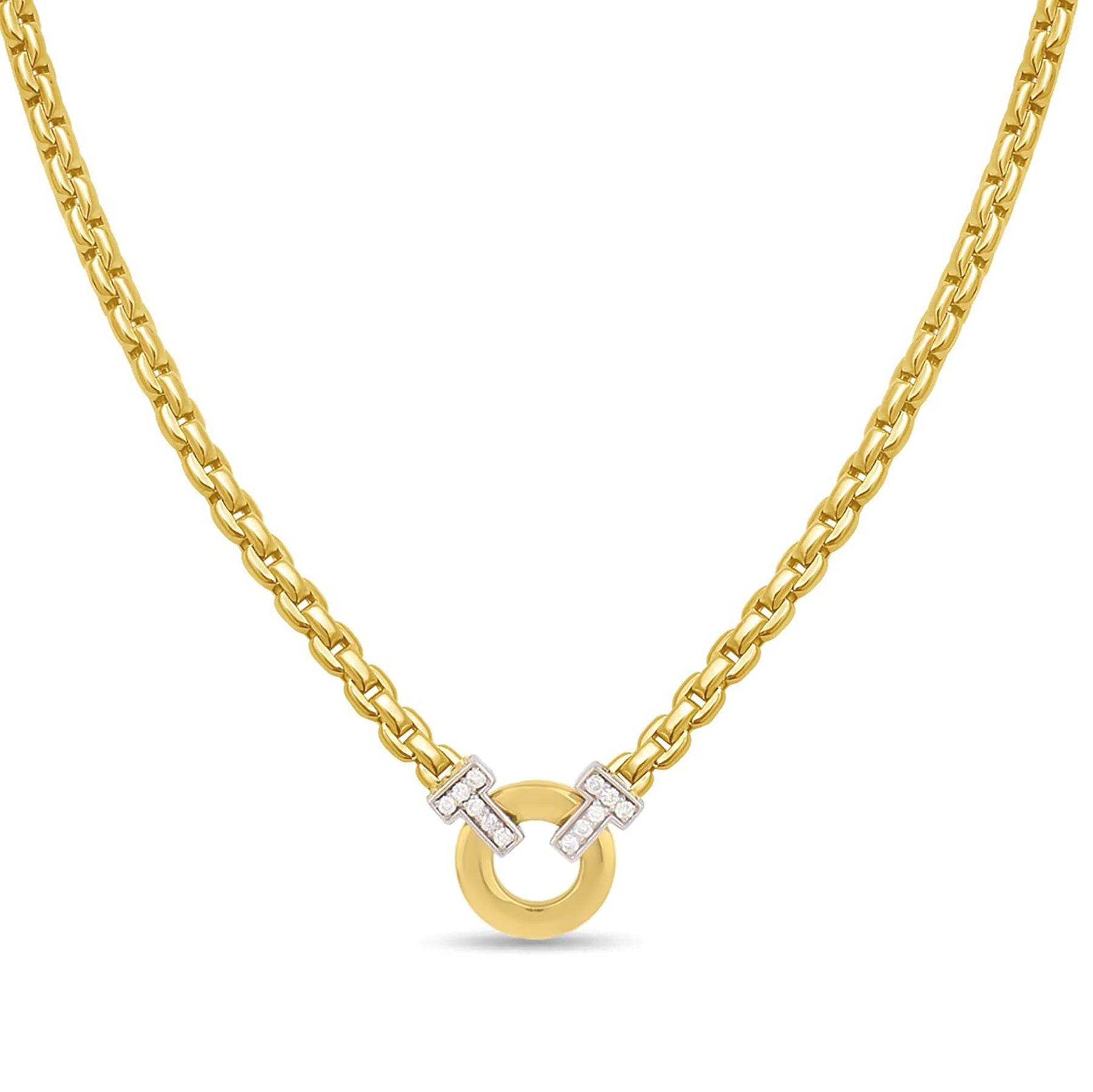14K Solid Gold Diamond Accented Venetian Box Chain Necklace