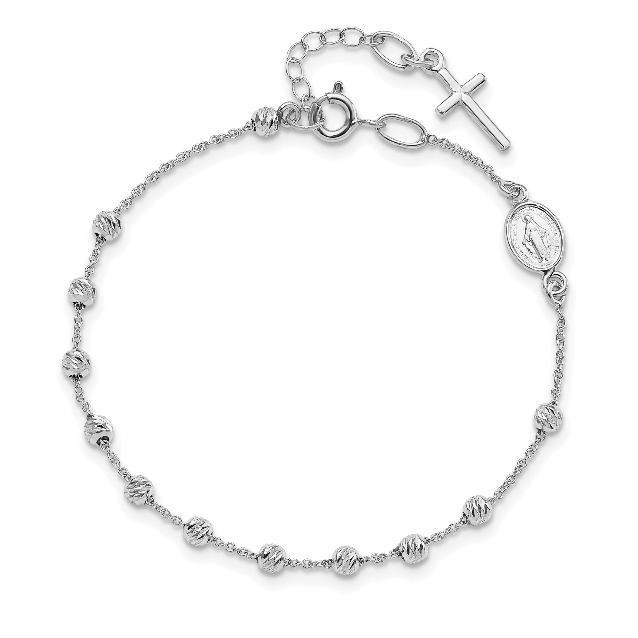 14K White Gold Diamond-Cut Beaded Rosary Bracelet with Miraculous Medal Charm (Copy)