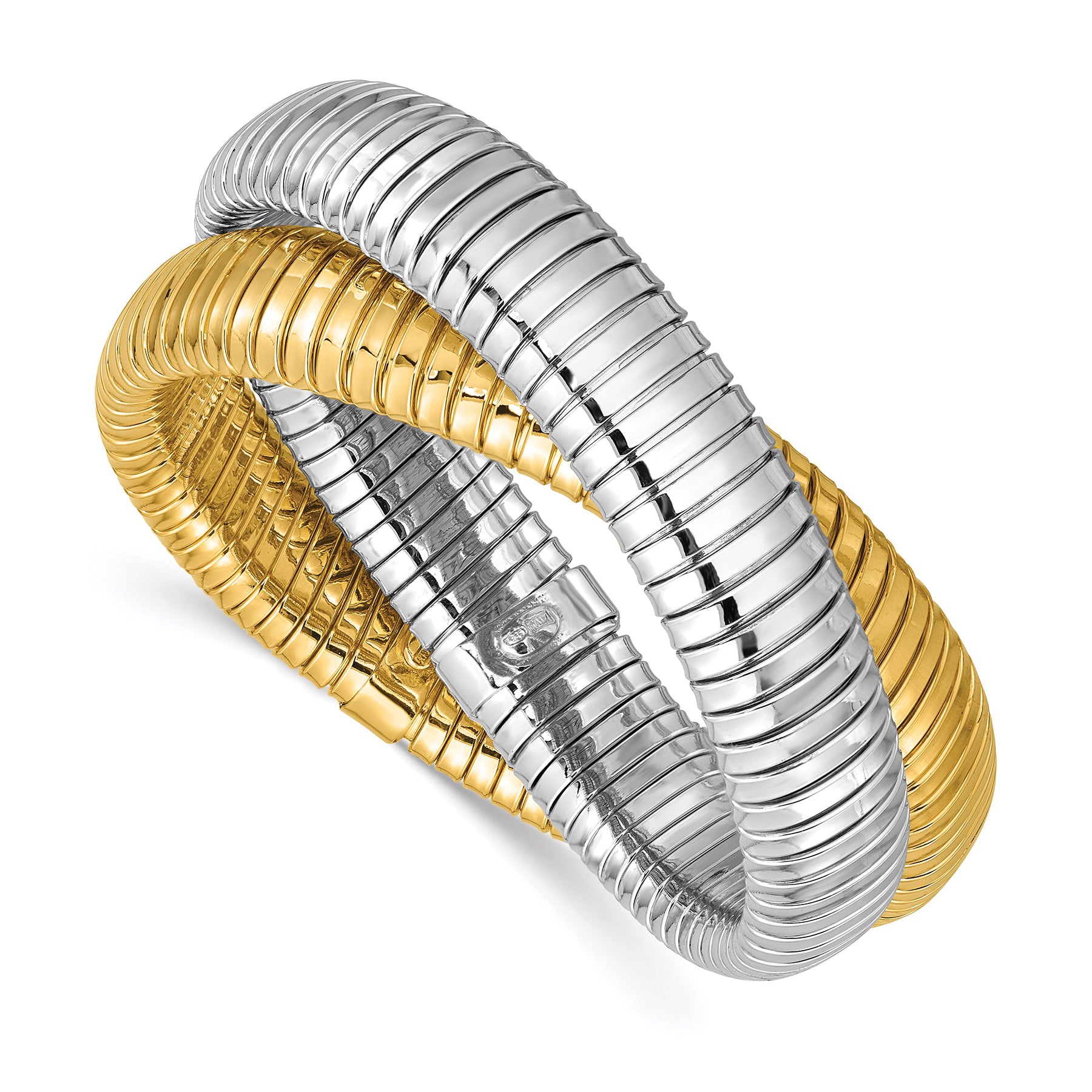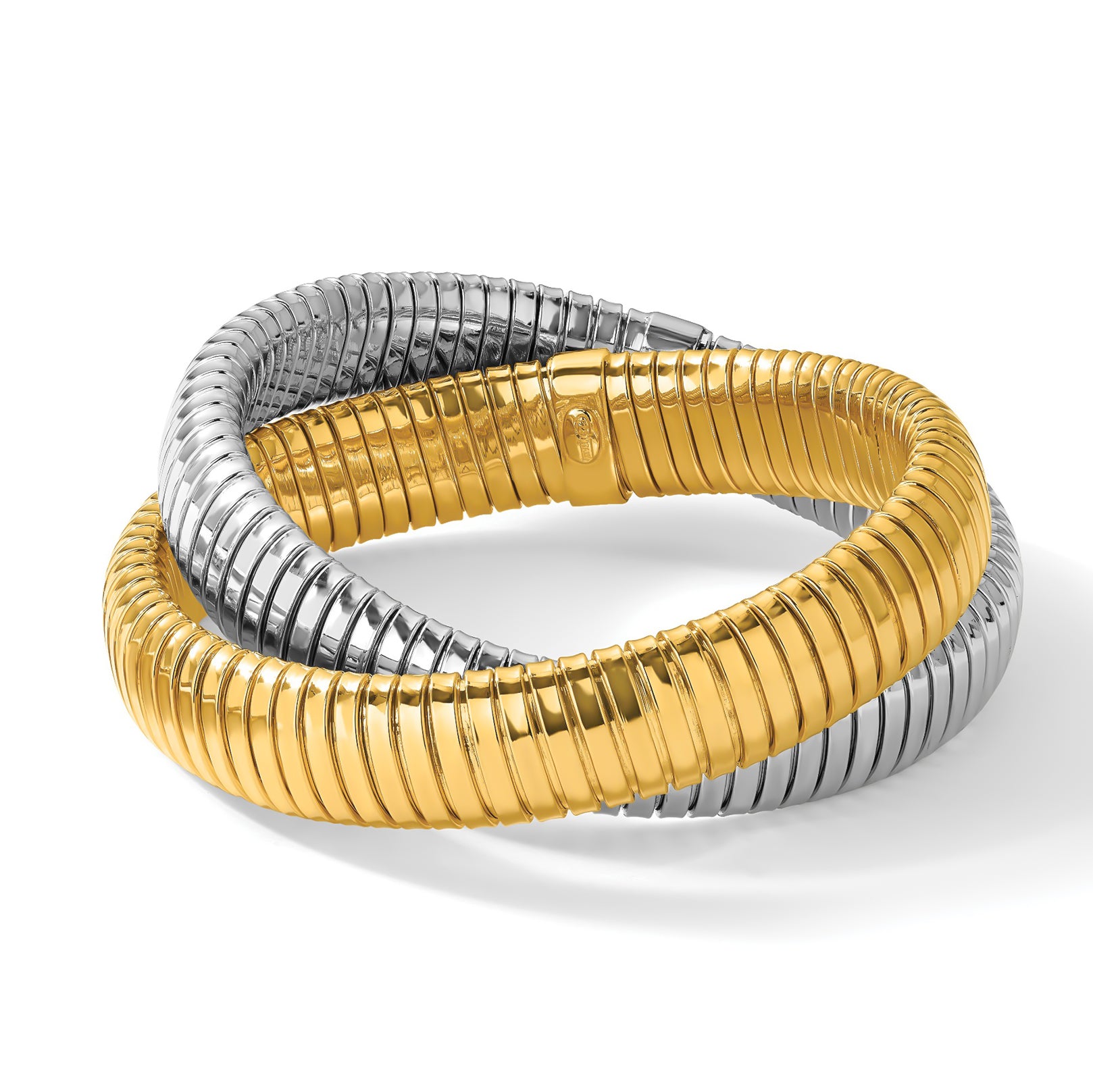 Italian Double Tubogas Stretch Bracelet – 925 Sterling Silver Flexible Coil Bangle