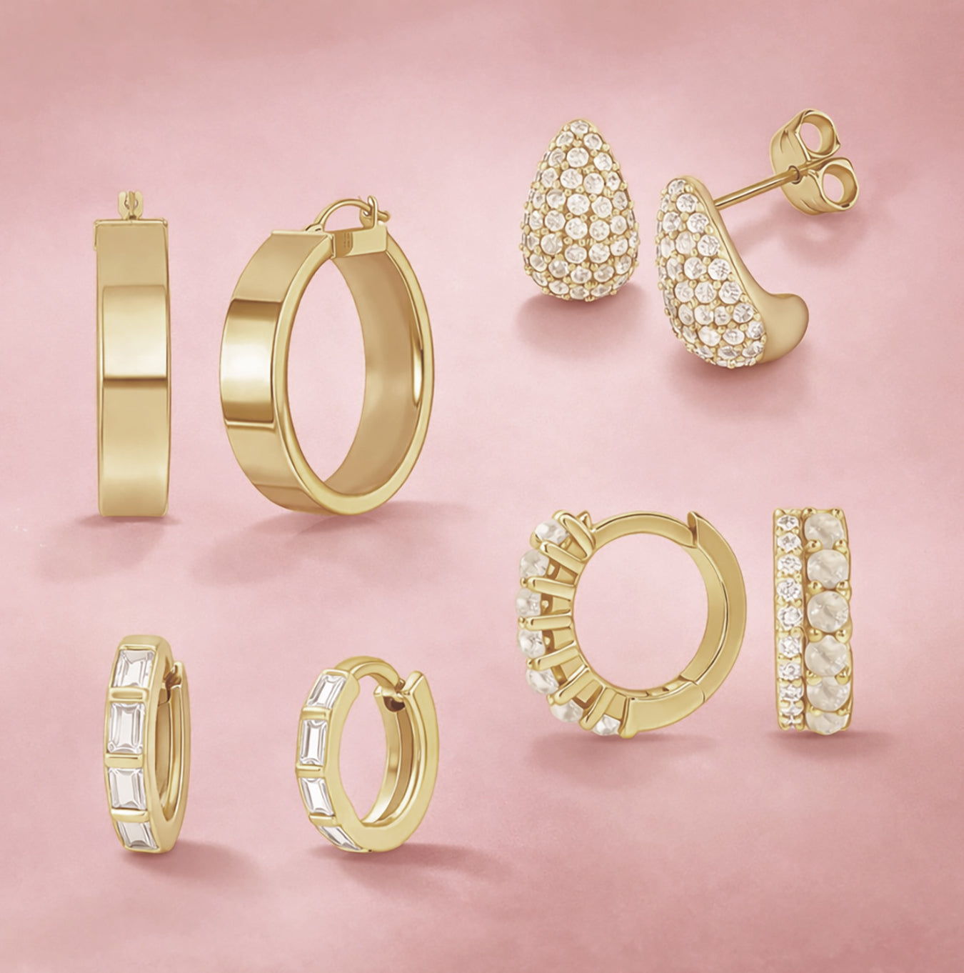 14K Solid Gold Baguette Diamond Huggie Hoop Earrings for Women