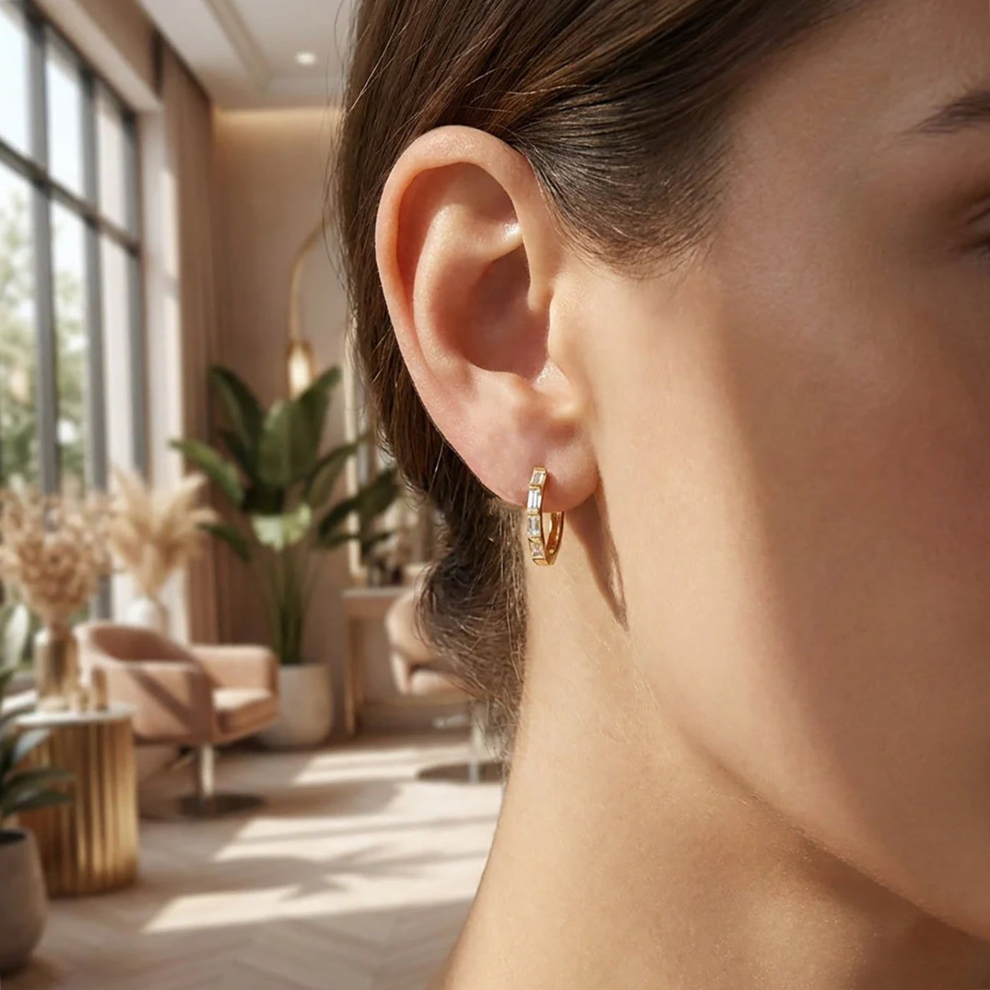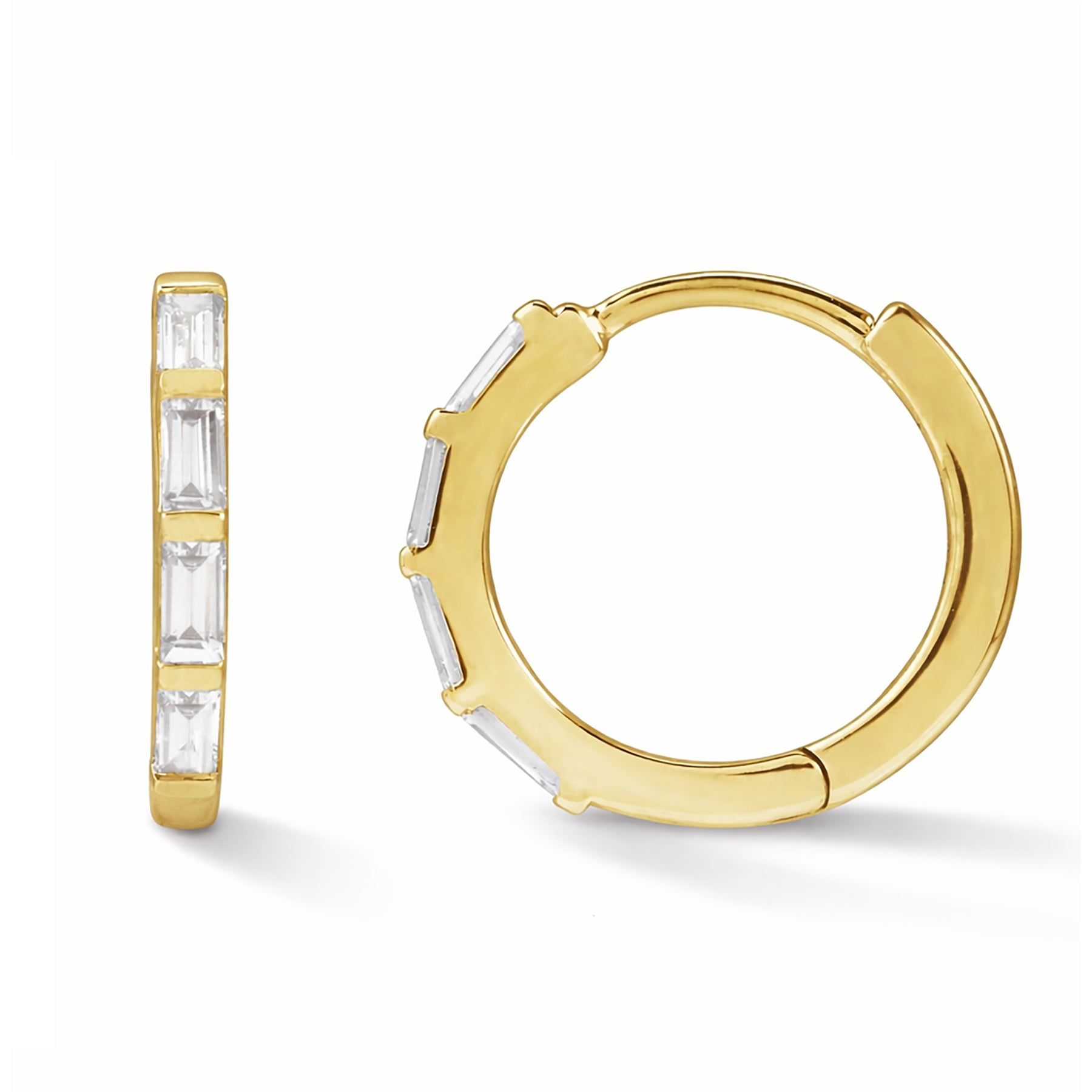 14K Solid Gold Baguette Diamond Huggie Hoop Earrings for Women