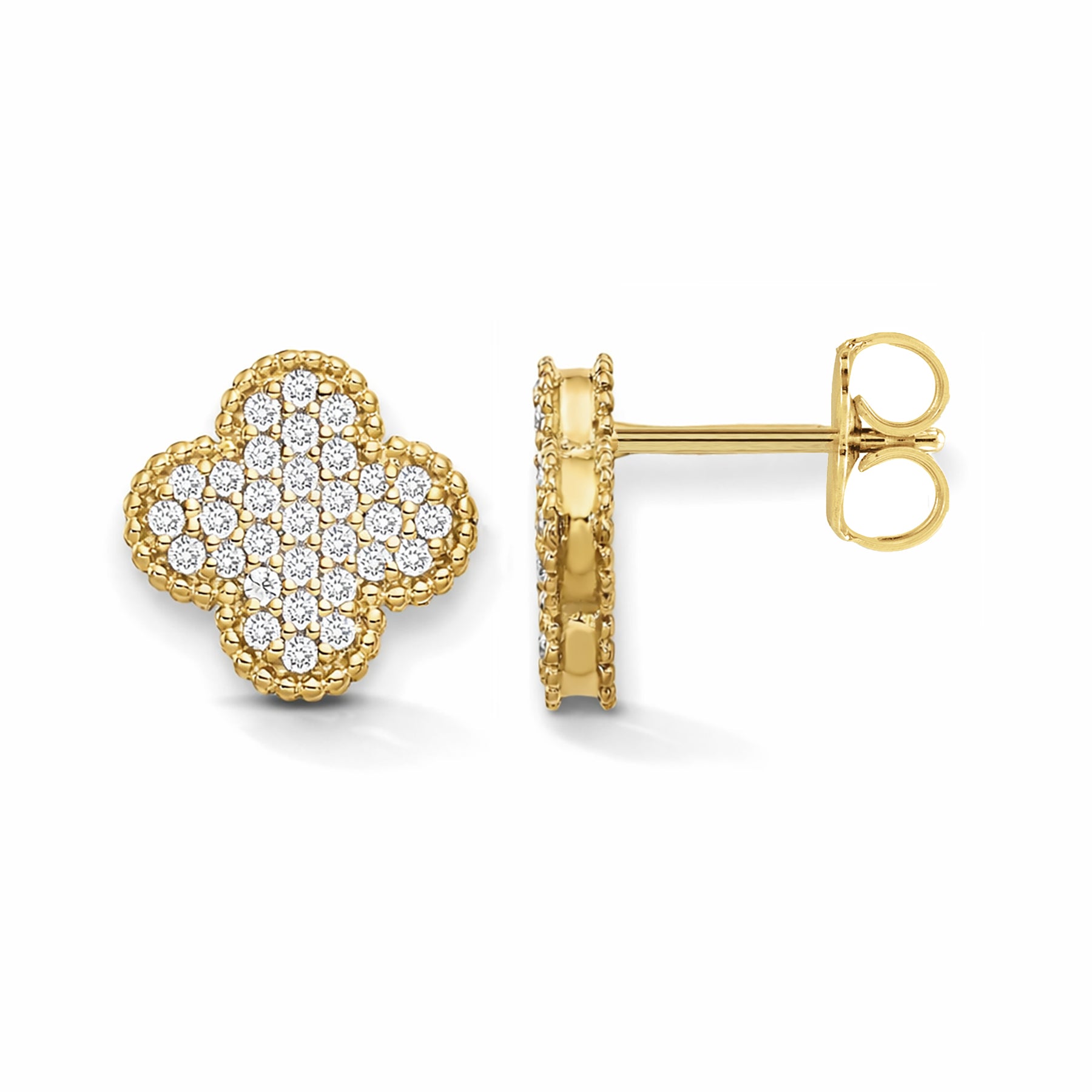 14K Solid Gold Diamond Four Leaf Clover Earrings for Women