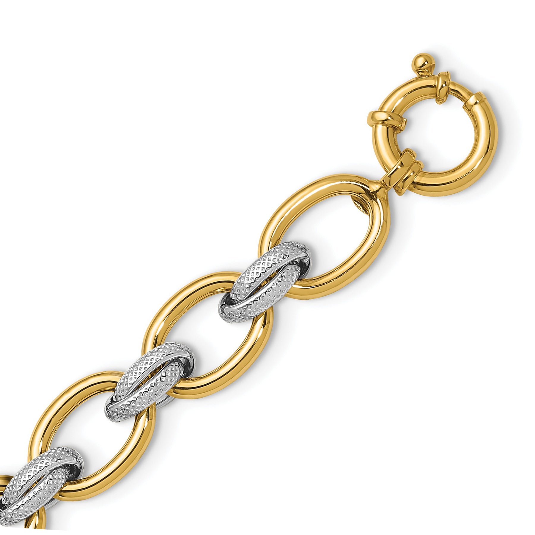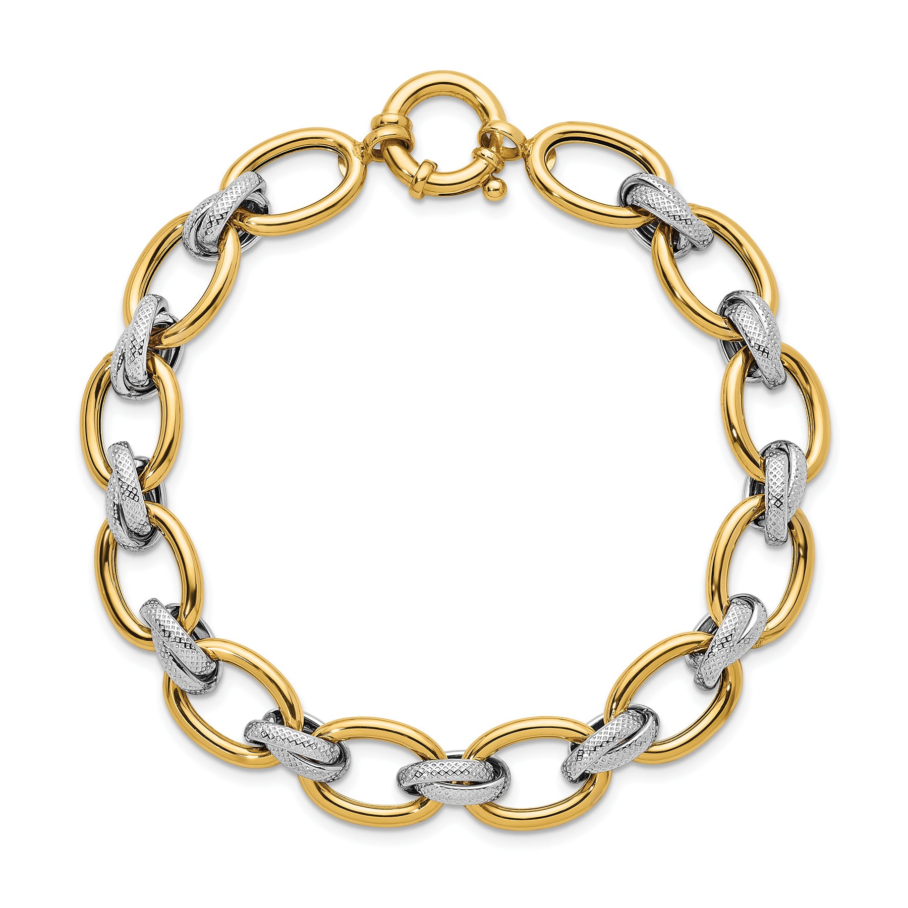 14K Solid Two Tone Gold Chunky Oval Link Chain Bracelet