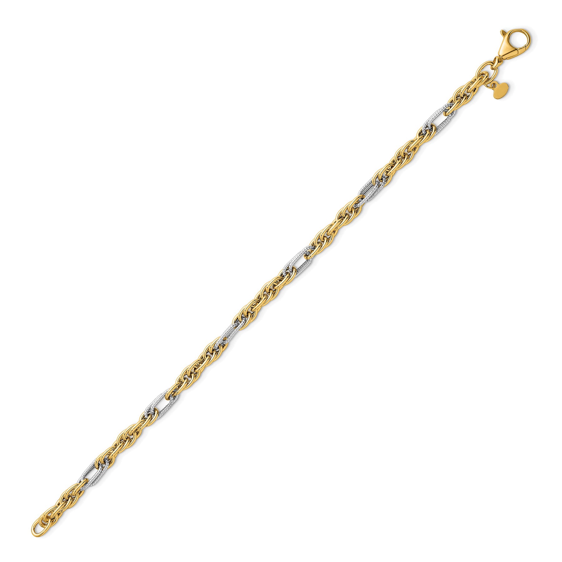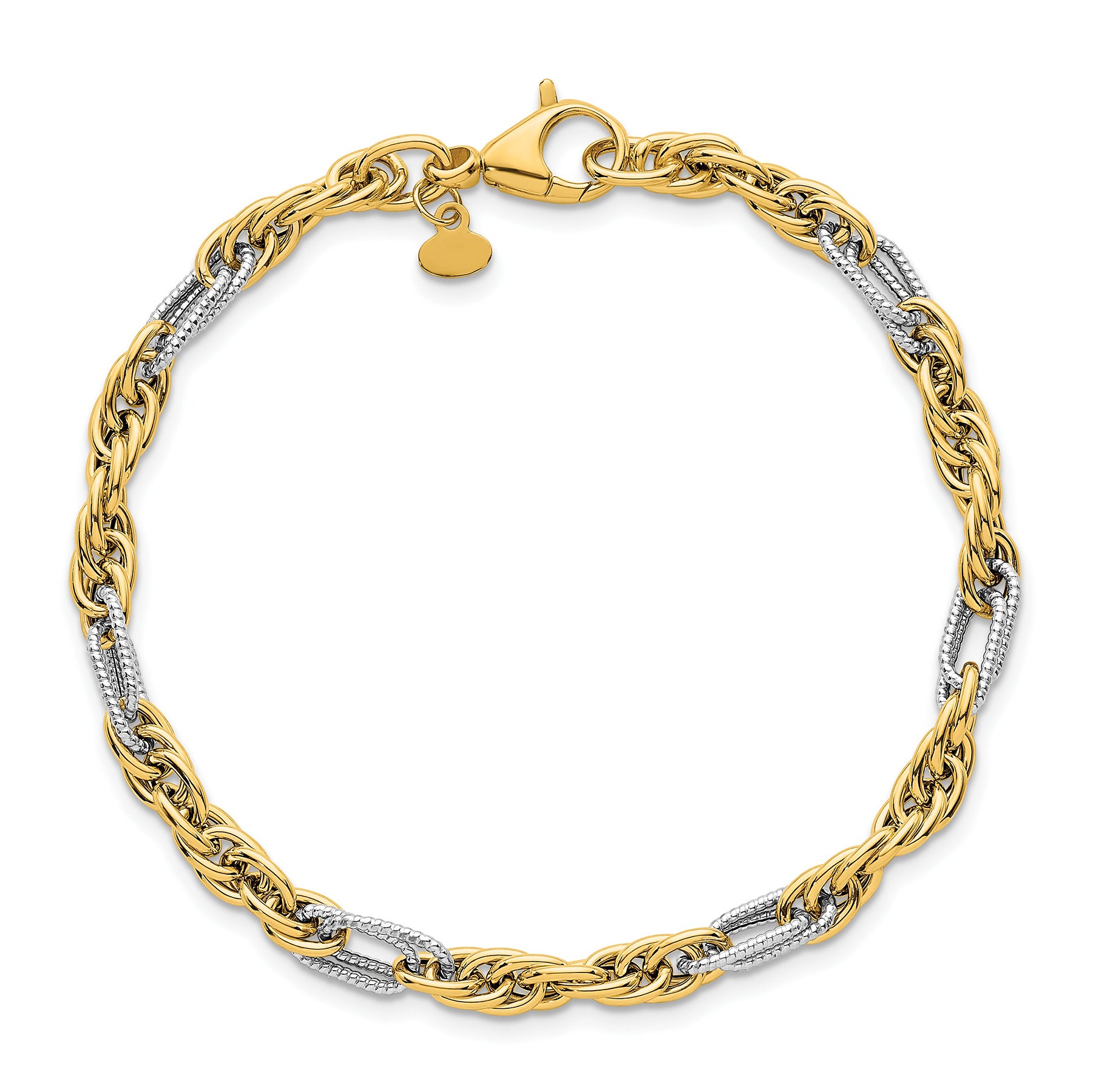 14K Solid Two Tone Gold Rope Chain Bracelet for Women, Men