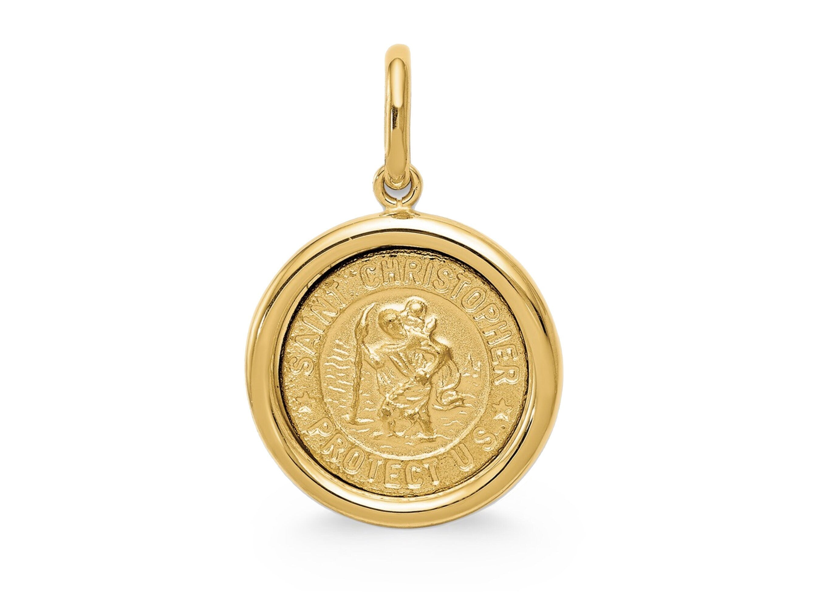 Engravable Saint Christopher Pendant 14K Solid Gold