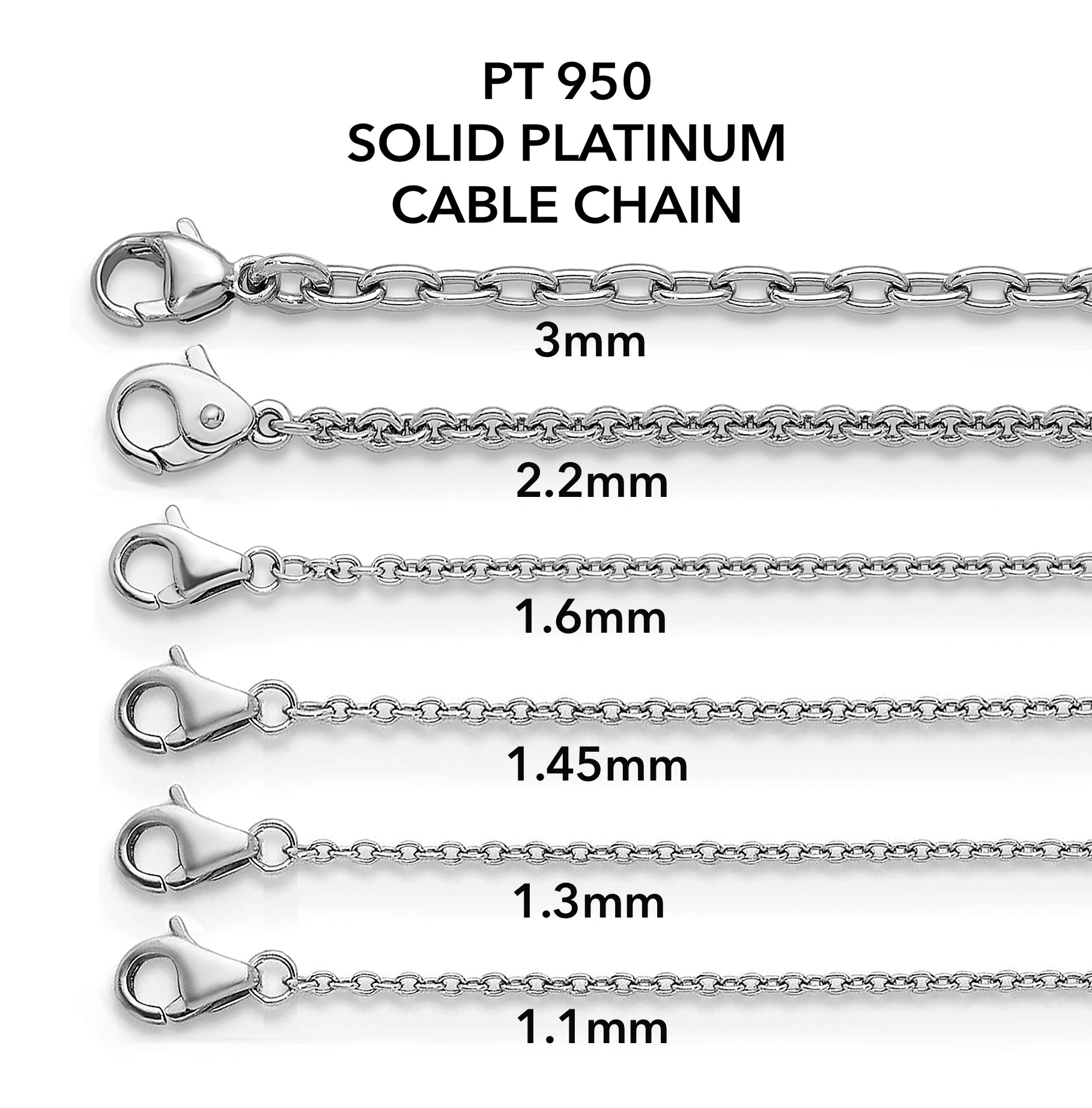 Pt950 Platinum Solid Cable Chain Necklace for Women, Men