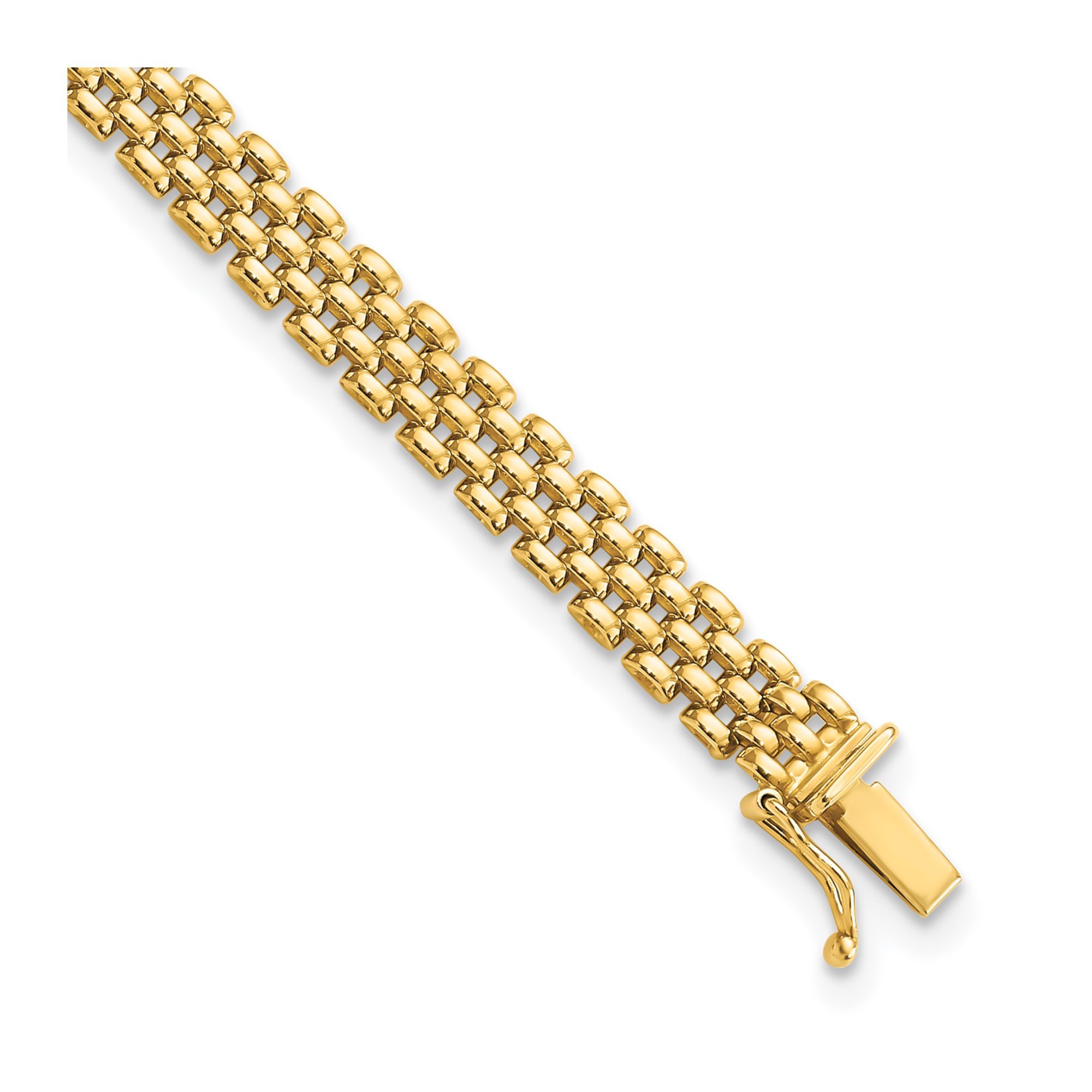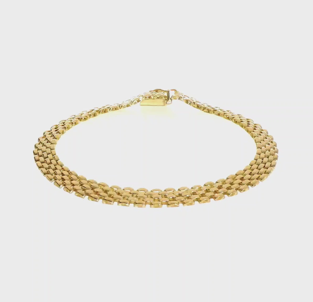This luxurious 14K yellow gold Panther Link Bracelet is an elegant symbol of sophistication and strength. The meticulously crafted panther links create a bold yet graceful design, exuding both timeless beauty and refined elegance. Each link interlocks seamlessly to form a fluid, flexible bracelet that drapes beautifully around the wrist.