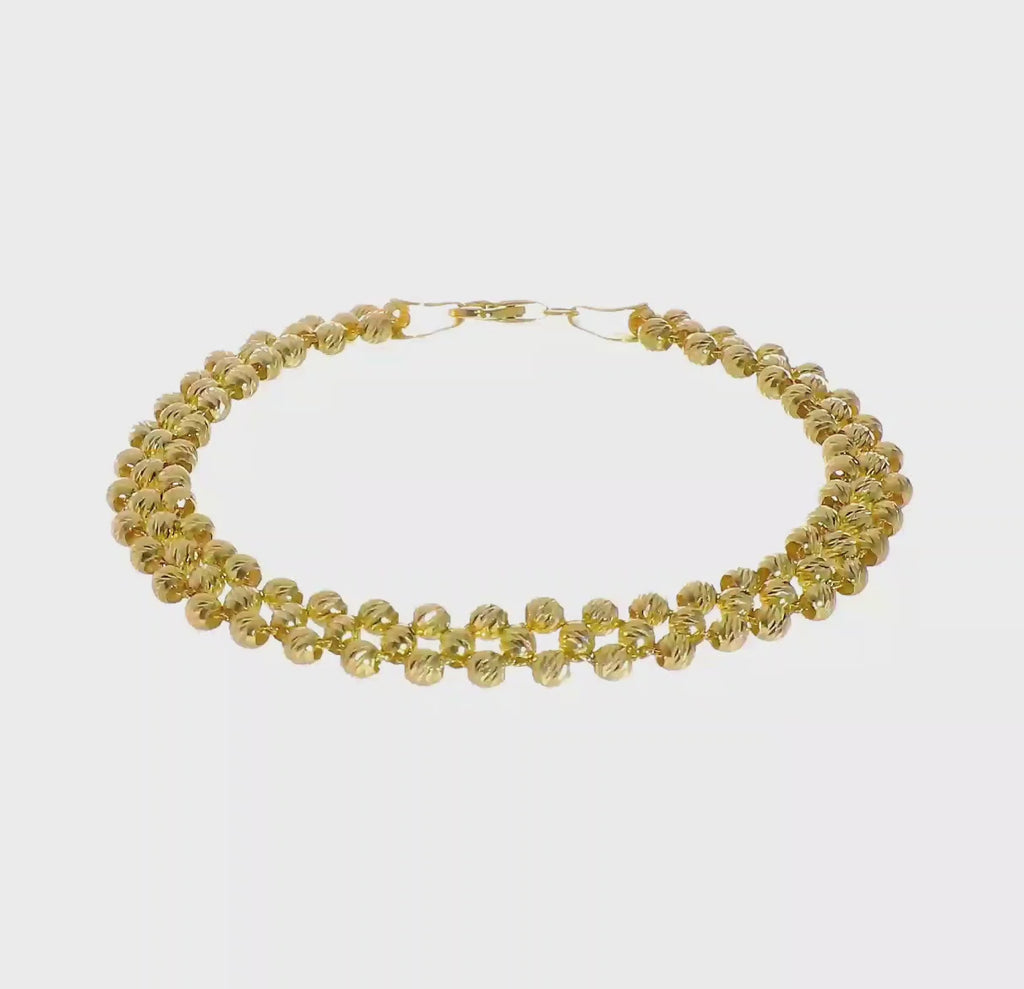 Shine with elegance in this 14K Gold Diamond-Cut Beaded Link Bracelet, designed with shimmering bead links that catch the light from every angle. At 7.15mm wide, this bracelet offers a bold, eye-catching look while remaining lightweight and comfortable for everyday wear. Perfect for stacking with other bracelets or wearing solo as a statement piece.