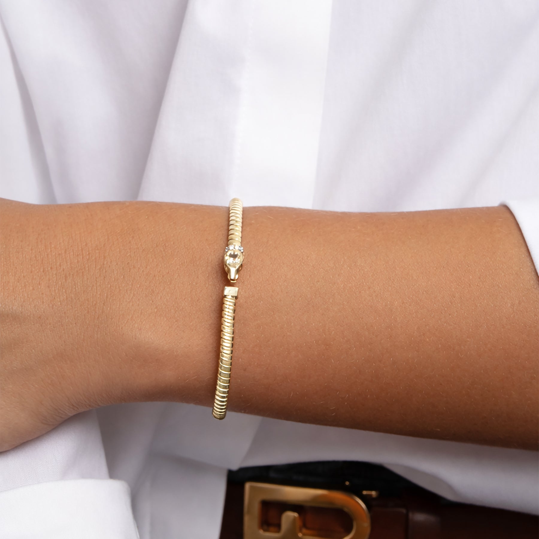 The flexible coil bracelet construction allows for easy wear while maintaining a bold, sculptural look. Designed for women who love statement jewelry, this diamond gold cuff bracelet is perfect for everyday wear, stacking, or gifting as a luxury fine jewelry piece.