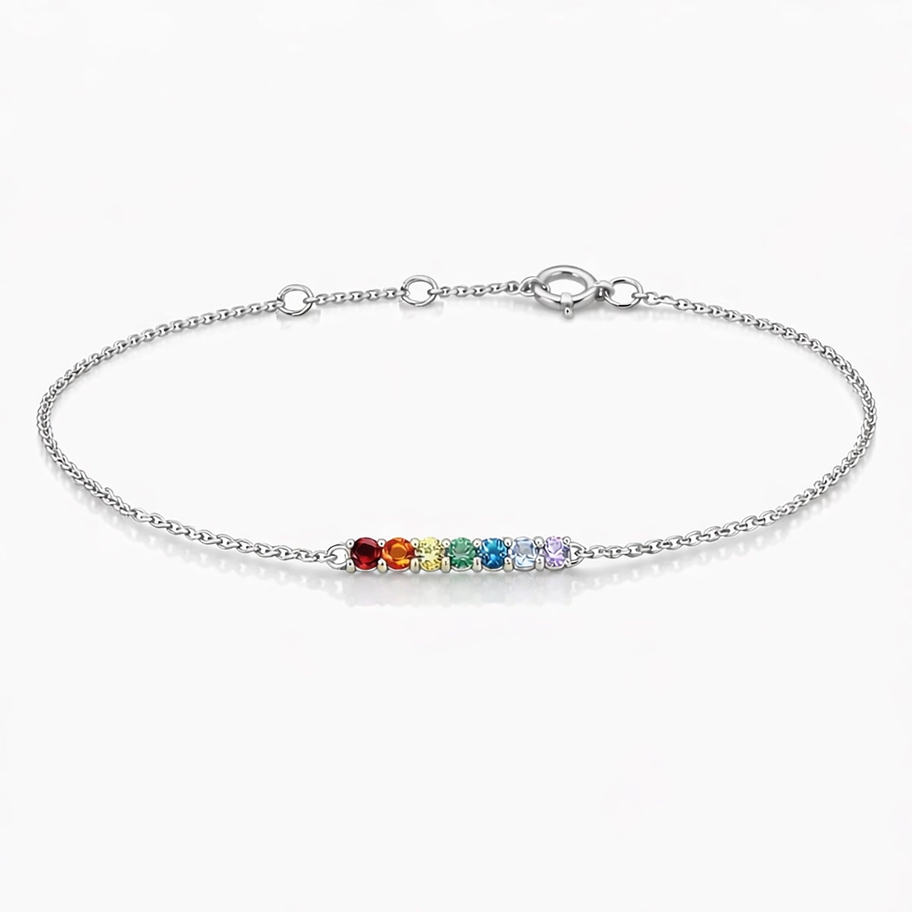 Add a touch of vibrant elegance to your jewelry collection with our Multi-Stone Dainty Rainbow Bracelet. This exquisite piece is designed to bring a splash of color and a hint of sophistication to any outfit.