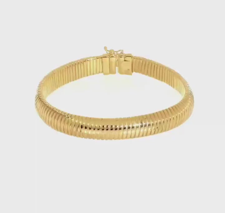 Introducing our stunning Tubogas Bracelet, a bold and luxurious accessory that exudes sophistication and modernity. This bracelet is meticulously crafted from high-quality 14 and 18 -karat gold, ensuring both durability and a radiant, timeless allure.
