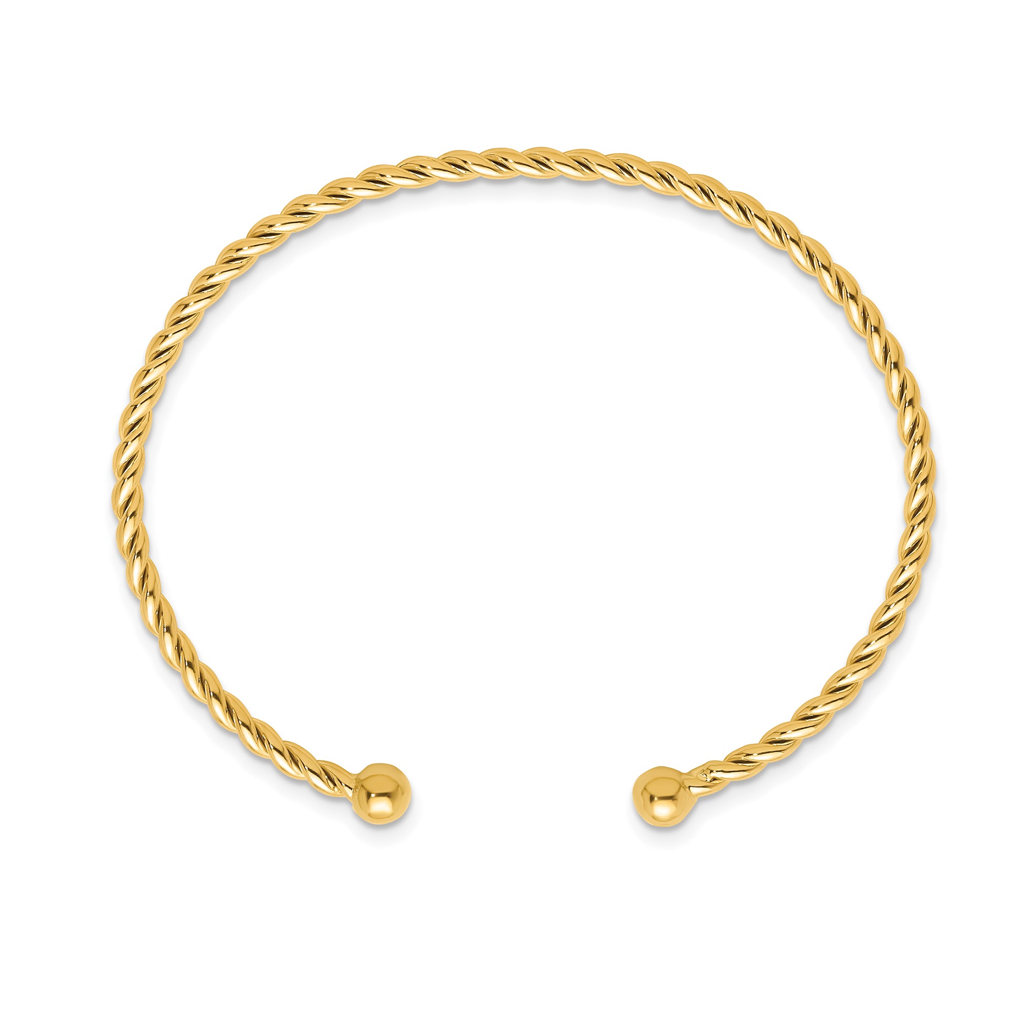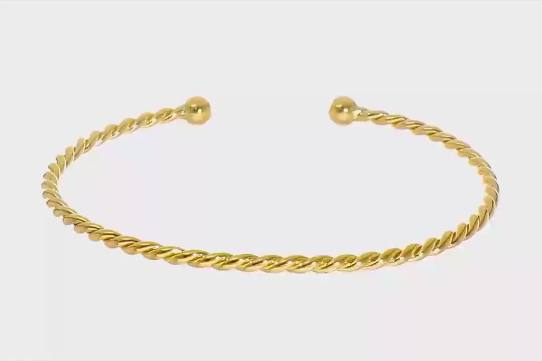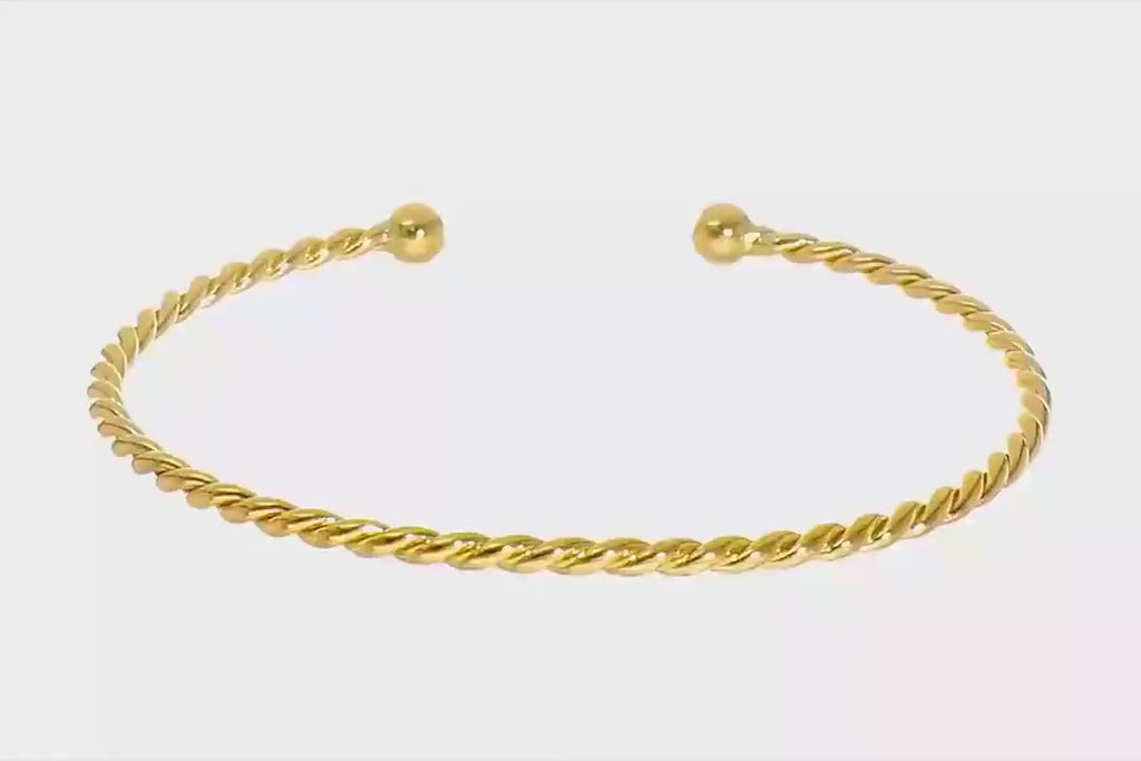 Material and Design: This bracelet is crafted from high-quality 14K gold, known for its durability and radiant glow. The twisted design of the cuff bangle adds a touch of sophistication and modern flair to the traditional bracelet style.