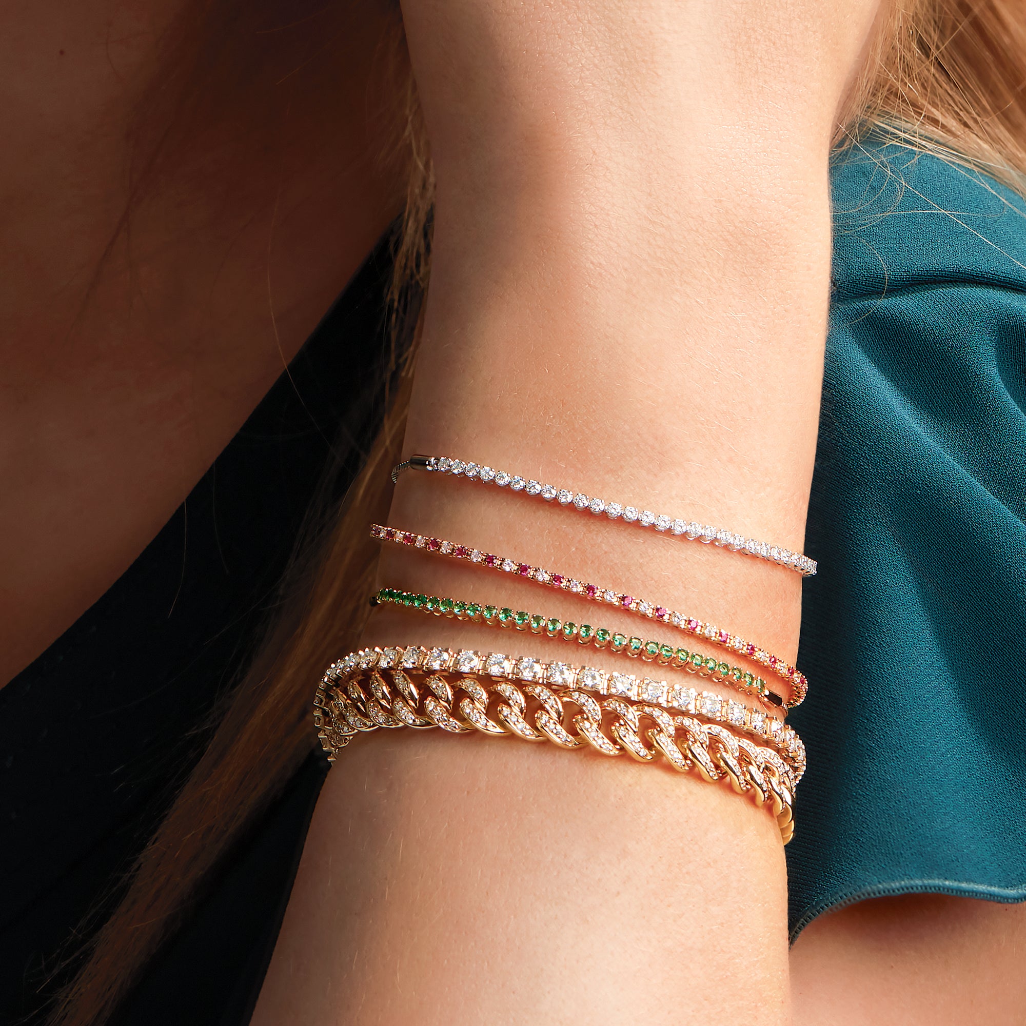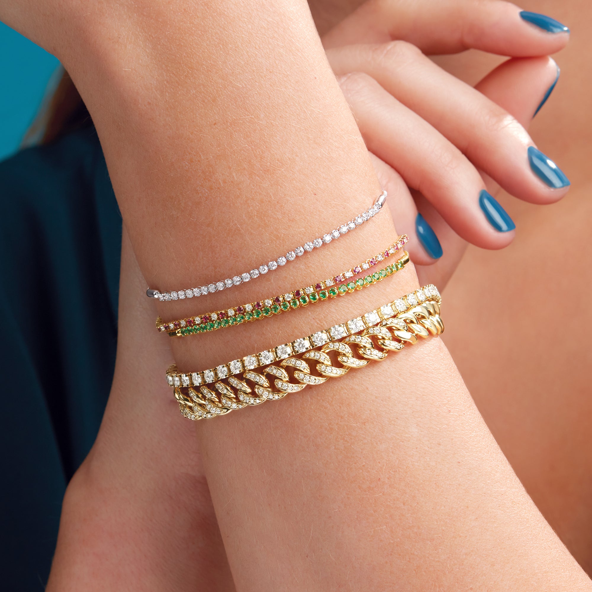 Featuring genuine rubies, emeralds, or sapphires paired with sparkling diamonds, this luxurious bracelet is an elegant statement piece. Perfect for formal events, casual elegance, or stacking with other bracelets.