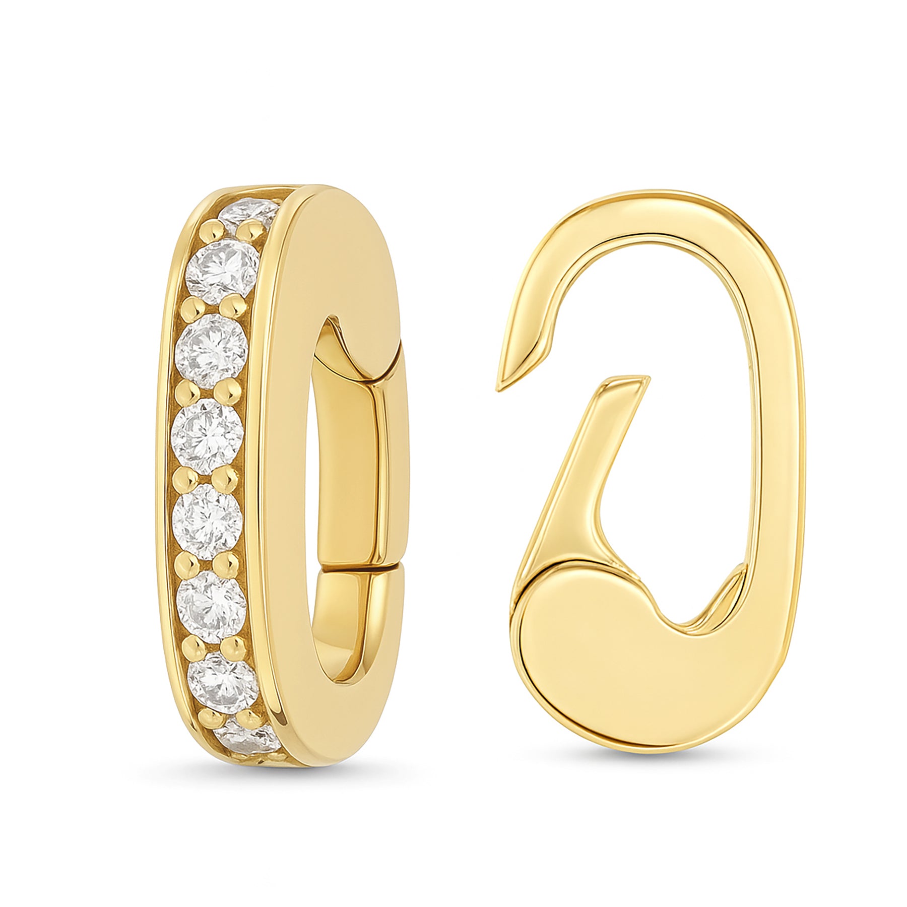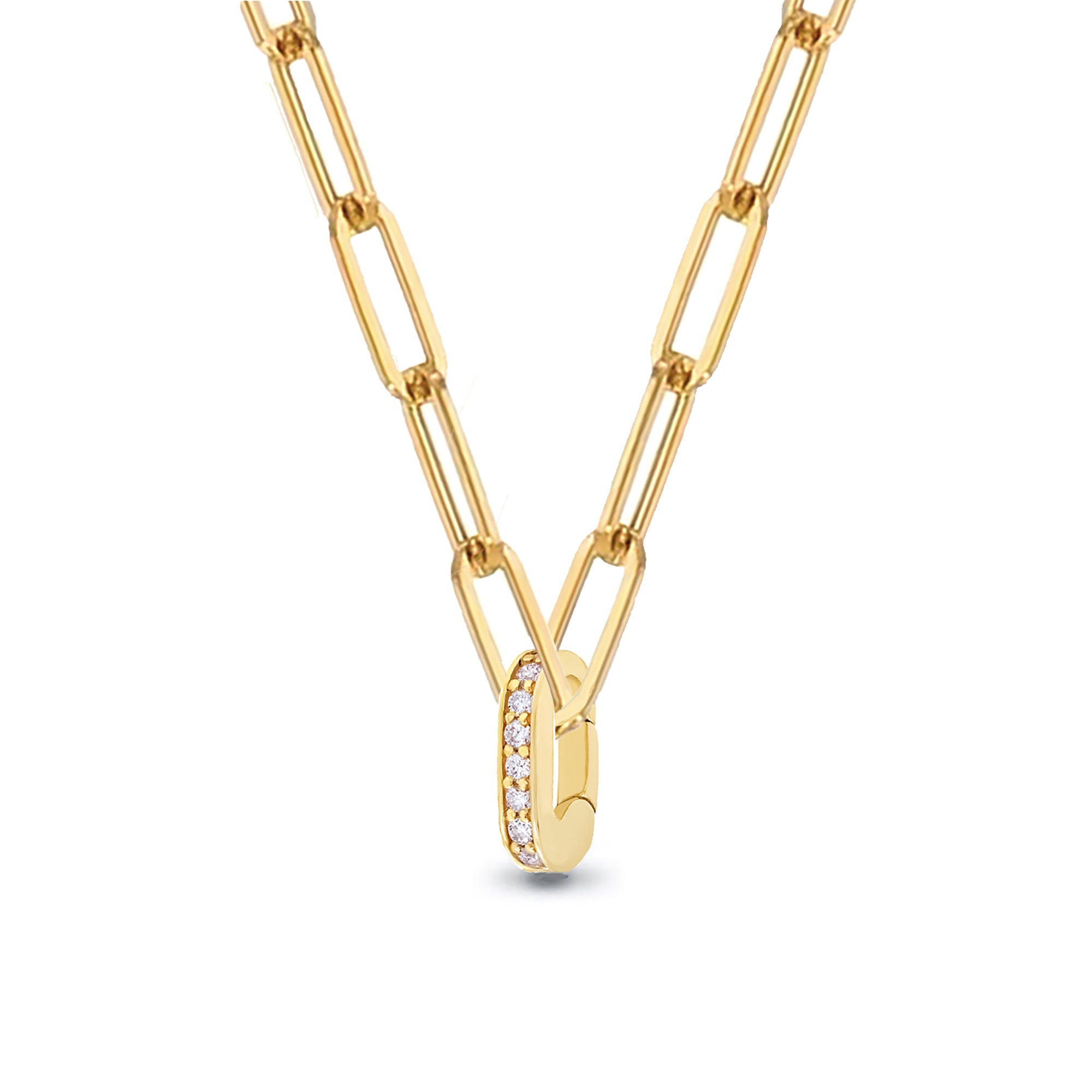 Adorned with delicate diamonds, this enhancer brings a subtle sparkle to your charm collection, turning each piece into a statement of sophistication. The petite size allows for versatile styling – attach it to your favorite chain, or bracelet, or even use it to customize other accessories.