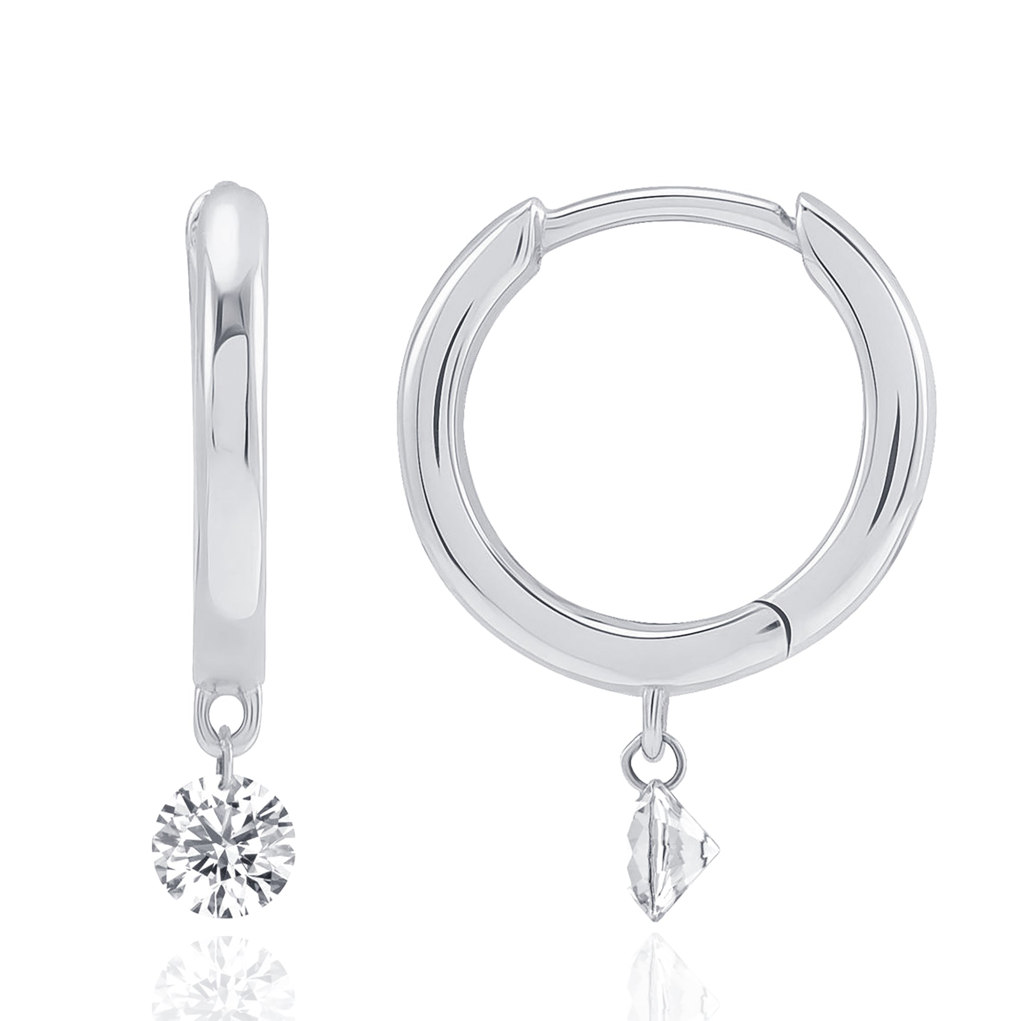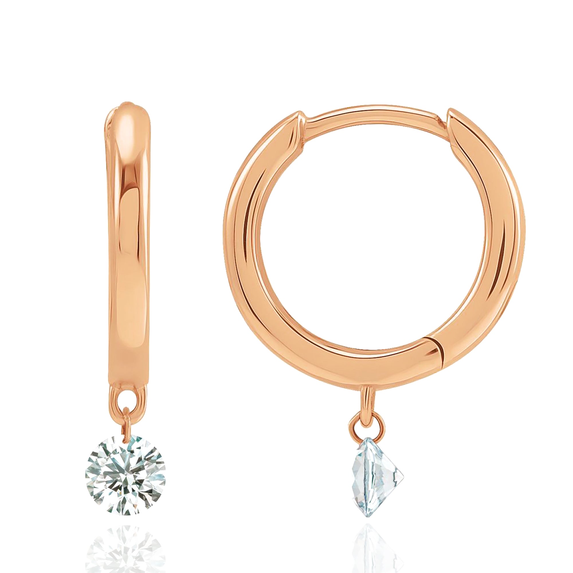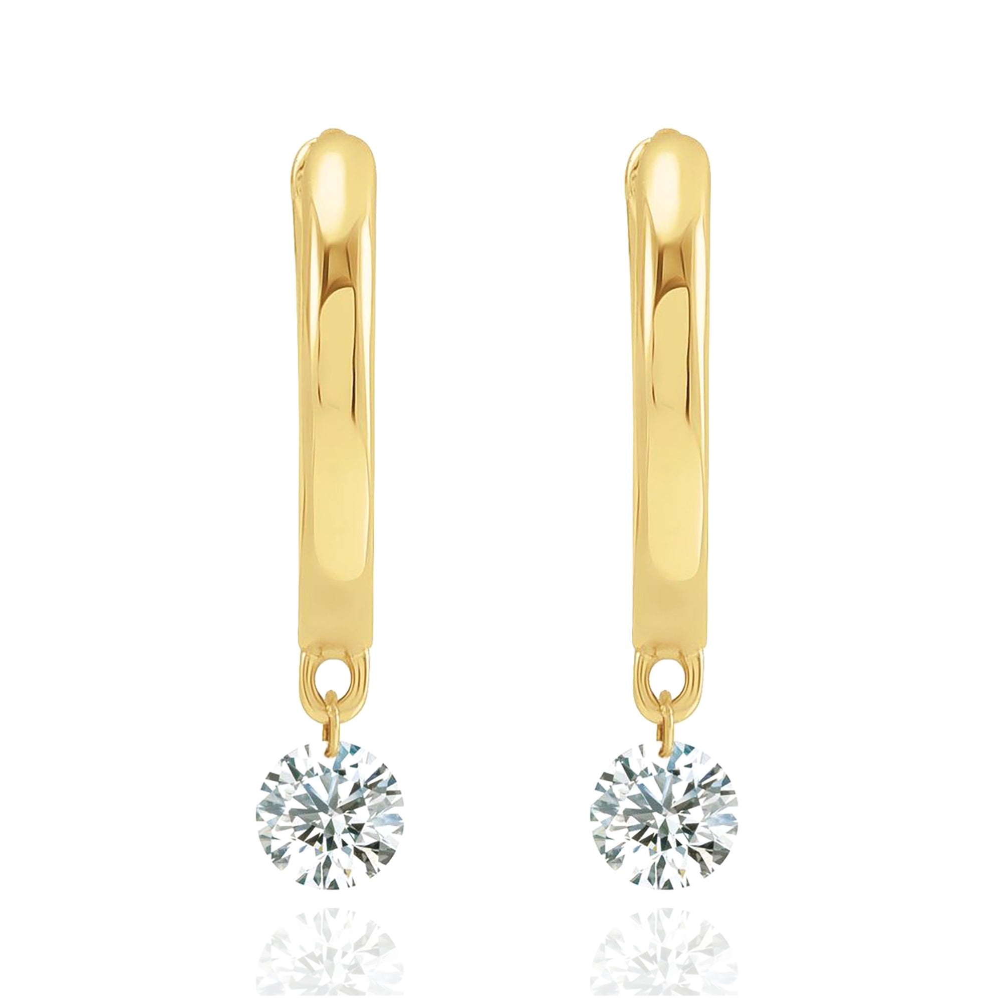 These 14K Gold Floating Diamond Hoop Earrings feature a sleek and modern design, with brilliant diamonds elegantly suspended to create a floating effect. Crafted from premium 14K gold, these hoops offer a minimalist yet luxurious touch, making them ideal for everyday wear or special occasions.