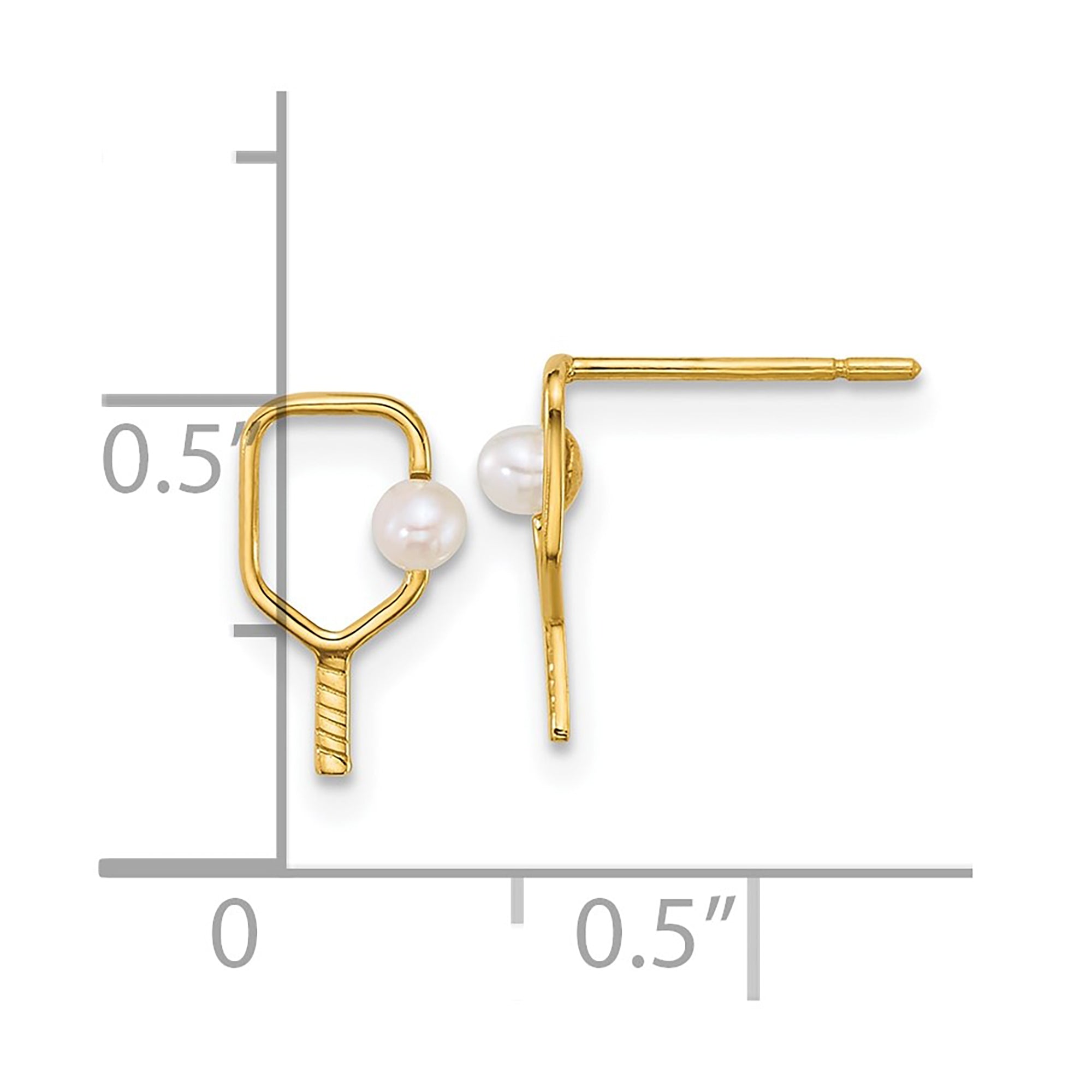 These earrings are beautifully designed with a minimalist pickleball paddle shape in 14k gold, accented with a freshwater pearl. They seem like a perfect gift for pickleball enthusiasts or anyone who appreciates unique and elegant designs.