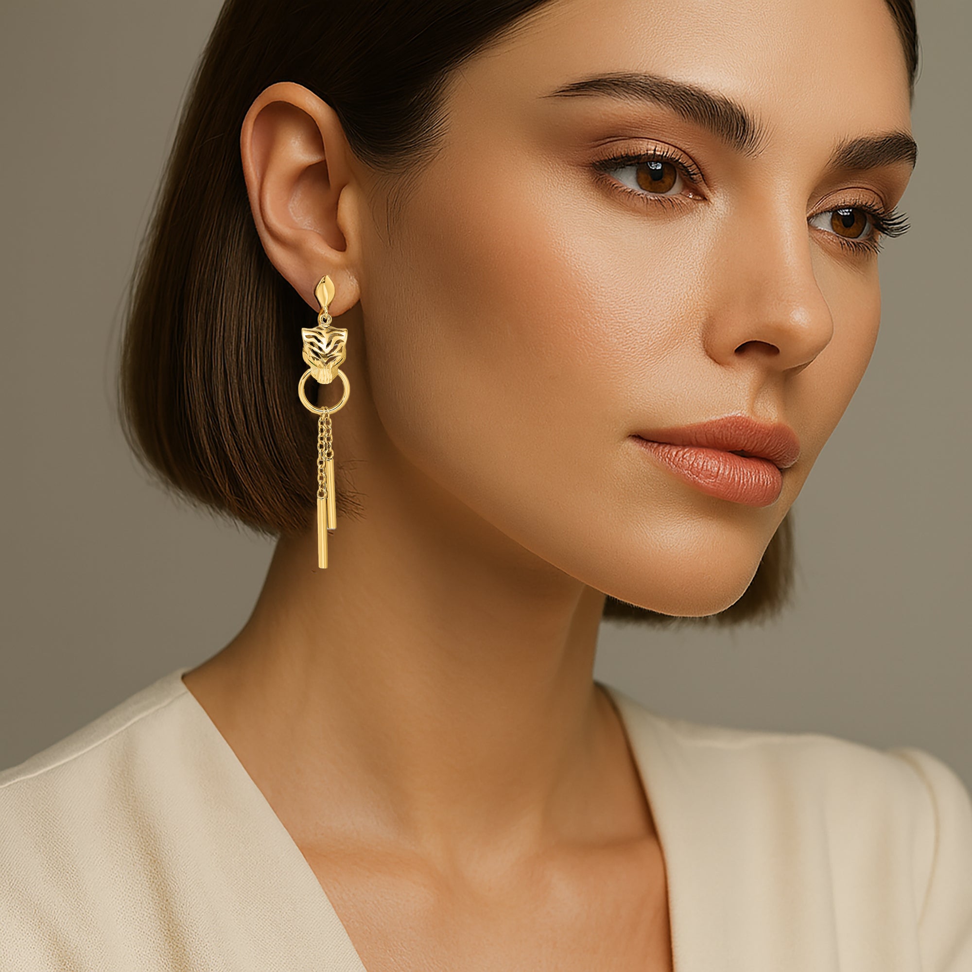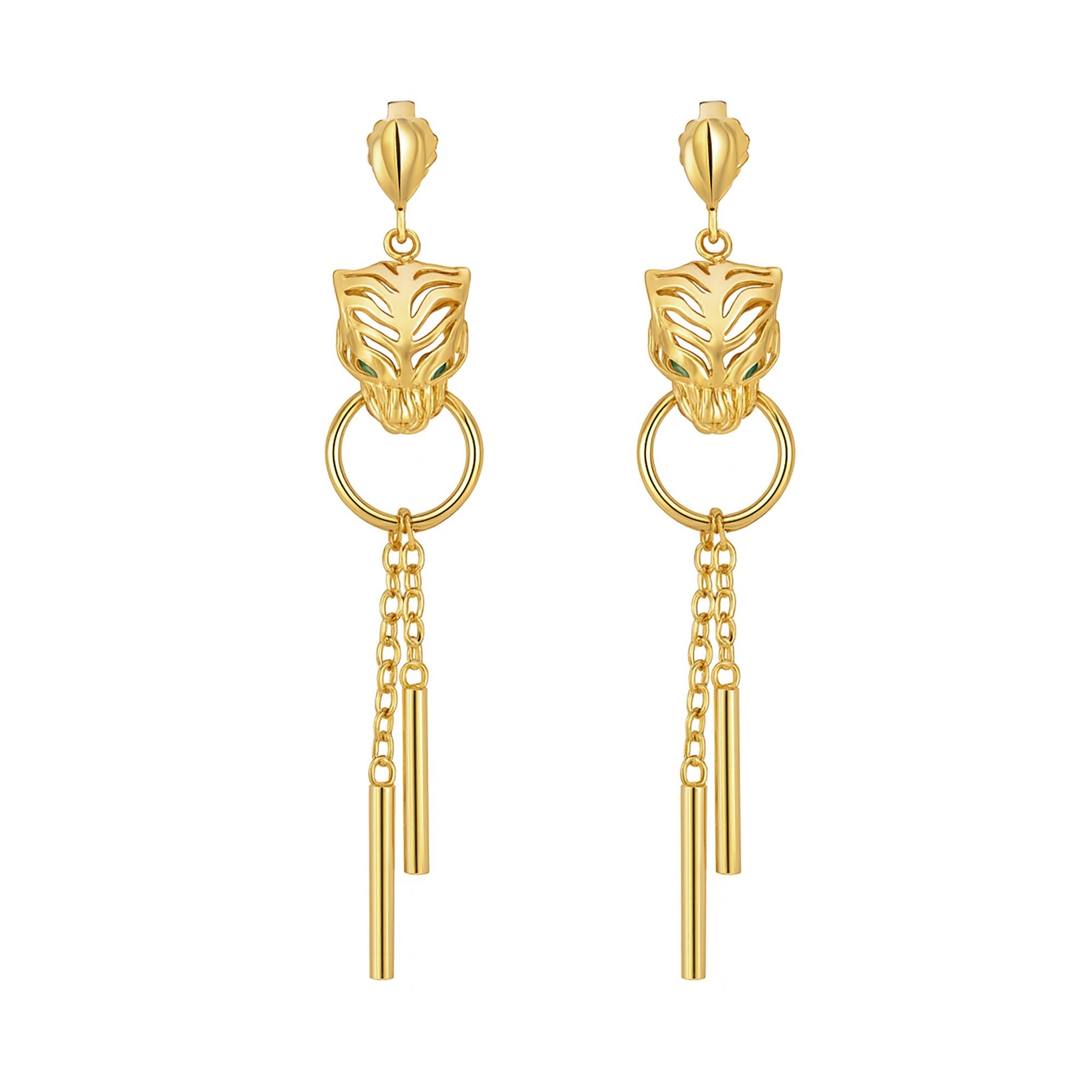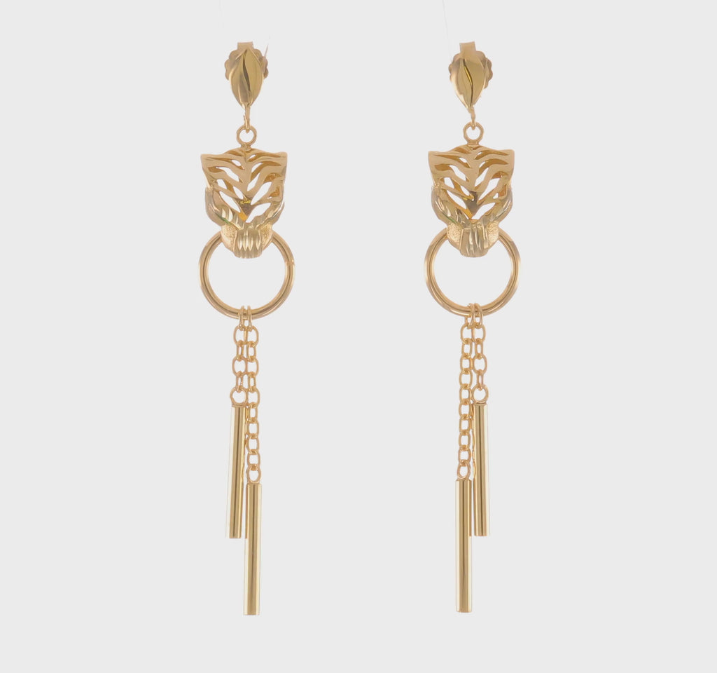 The tigerās fierce gaze is balanced by delicate gold chain drops that sway with movement, adding grace and sparkle. Every detailāfrom the polished finish to the impeccable Italian craftsmanshipāreflects the excellence of fine jewelry artistry.