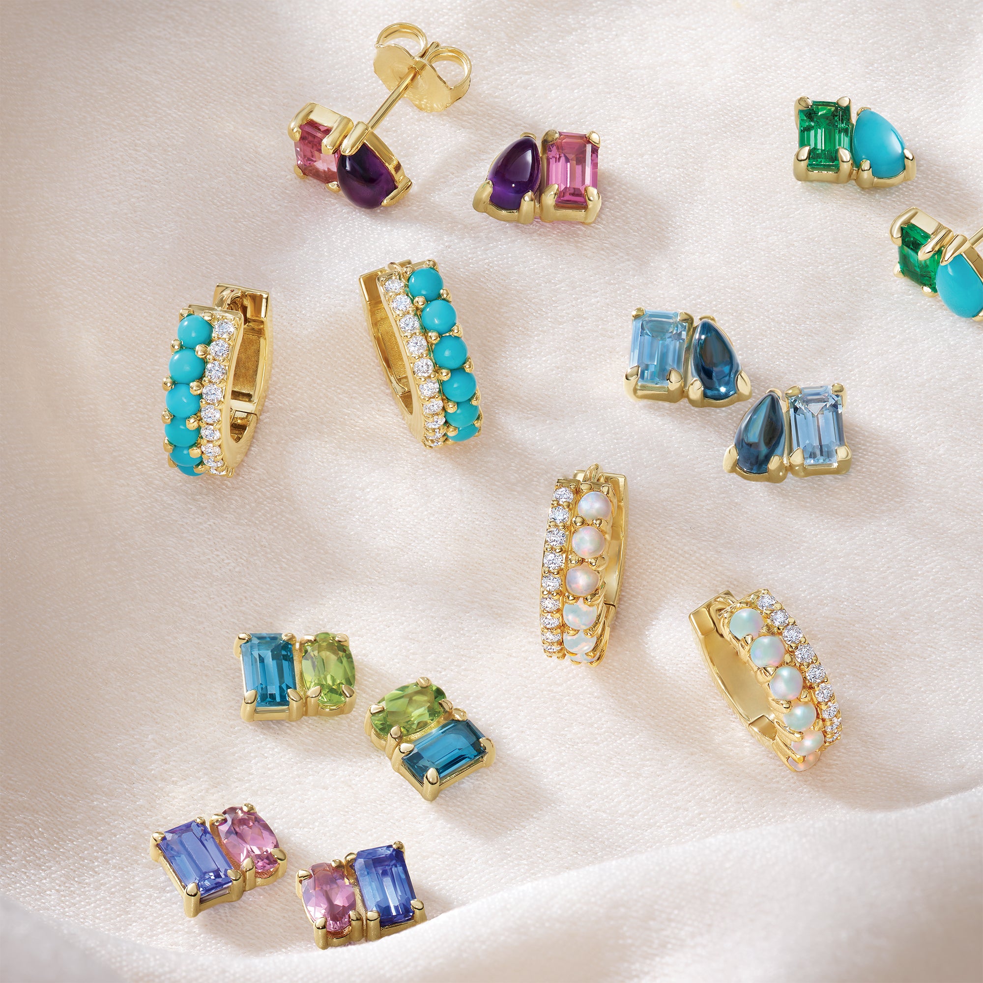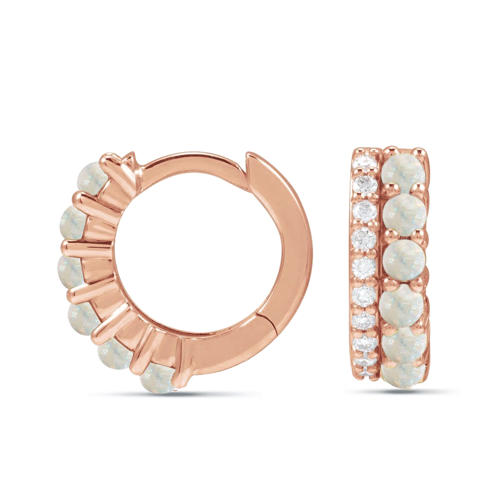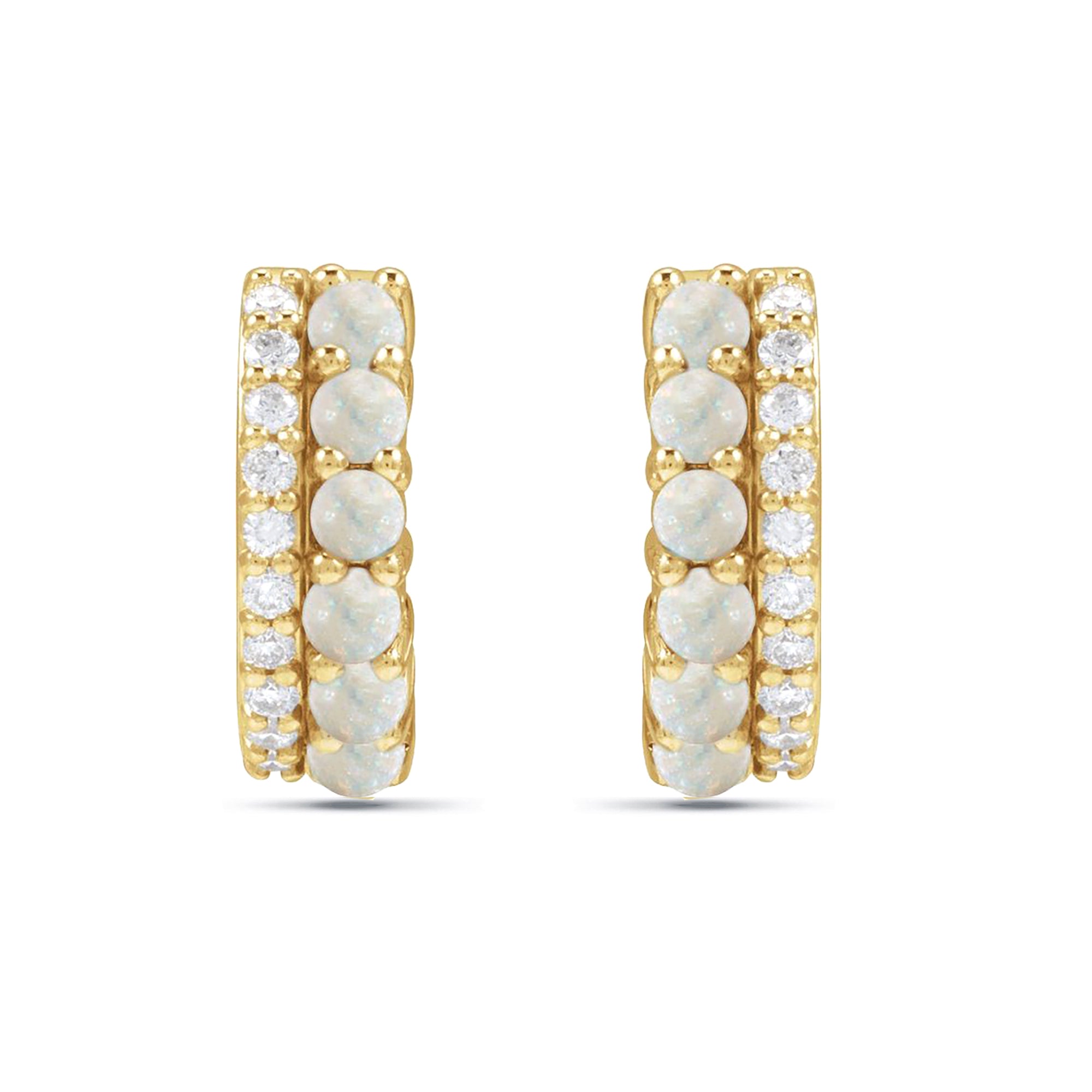 These 14K Solid Gold Diamond and White Opal Huggie Hoop Earrings bring together timeless elegance and a touch of ethereal beauty. Featuring natural diamonds paired with radiant white opals, these earrings are a stunning addition to any jewelry collection.