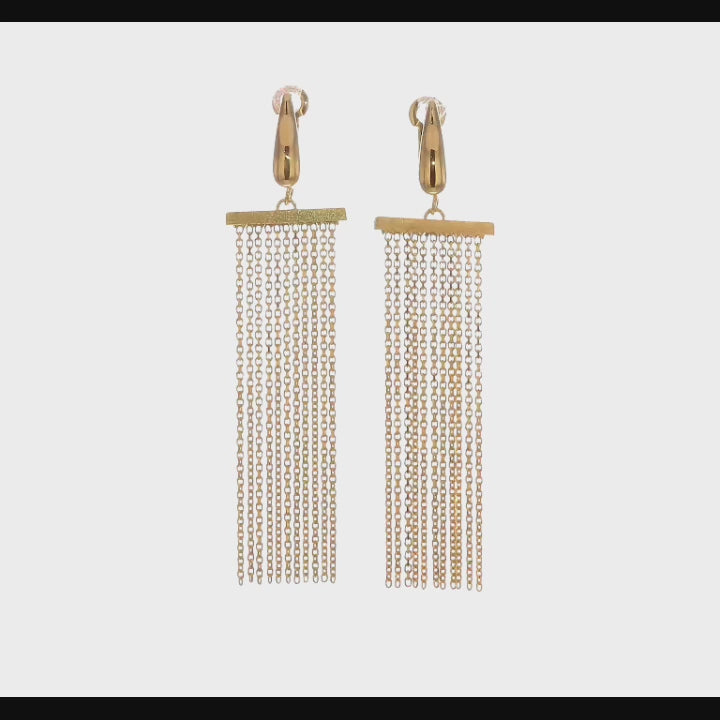 Elevate your look with these stunning 14K Solid Gold Multi-Strand Tassel Dangle Earrings, expertly crafted in Italy. Designed for effortless movement and light-catching shine, these elegant fringe earrings feature multiple fine gold chains that create a luxurious, fluid drape with every step. Their polished Italian construction and timeless silhouette make them the perfect statement piece for day or night.