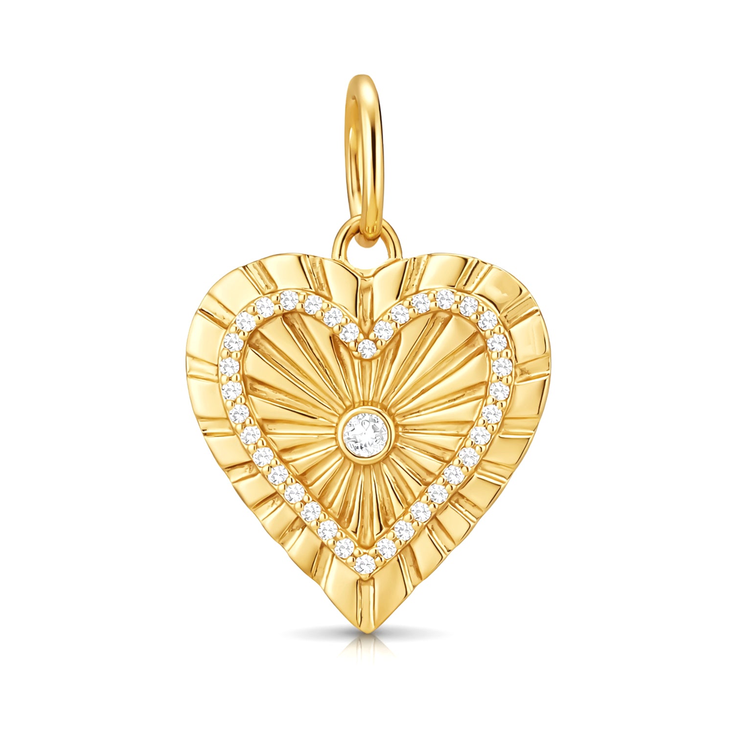 Crafted with meticulous attention to detail, the heart-shaped pendant features a modern twist with its striped diamond pattern. The brilliance of diamonds against the warm backdrop of 14k gold creates a captivating contrast, adding a touch of sophistication to this classic symbol of love.