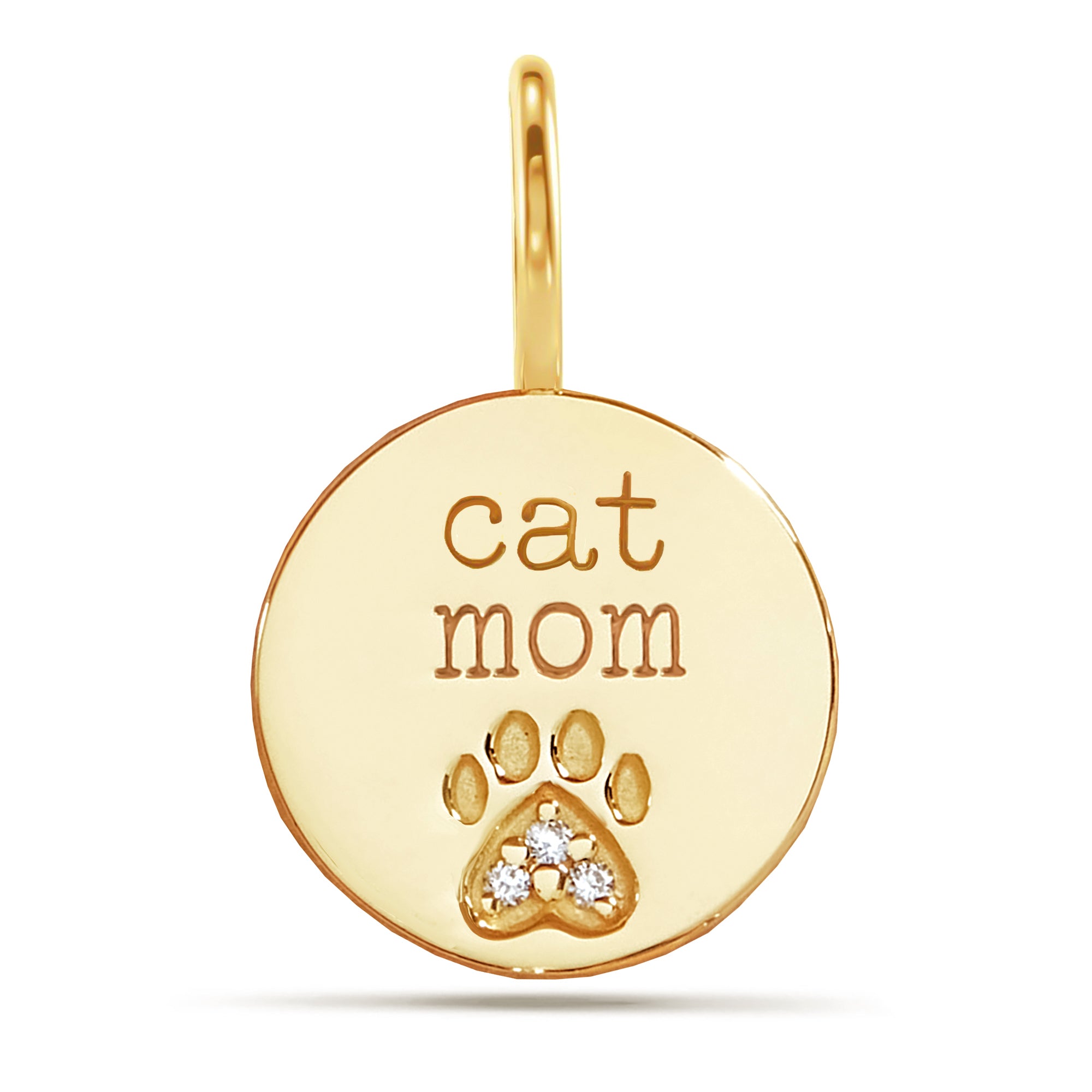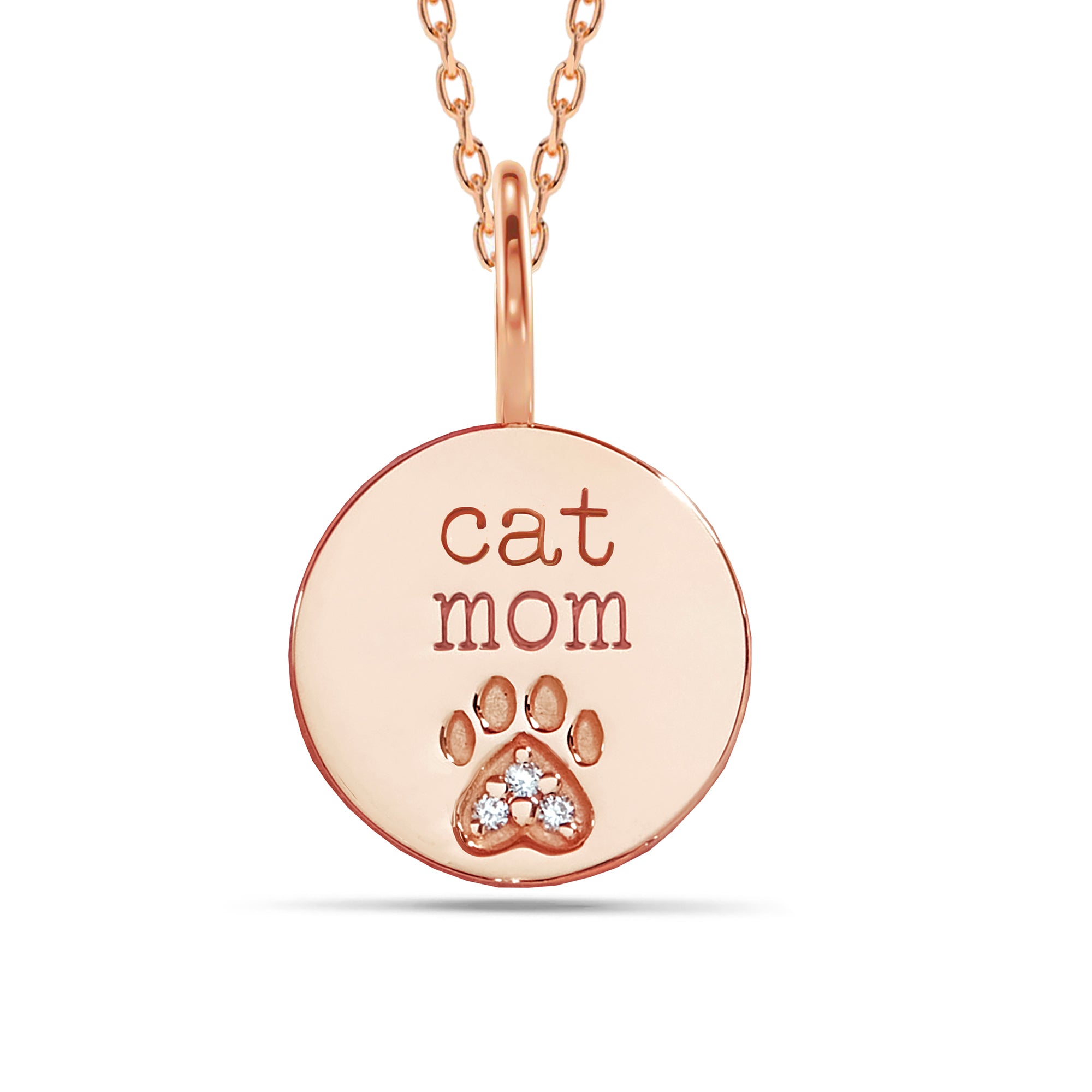 14K Gold Diamond Paw Print Dog Mom Pendant Necklace