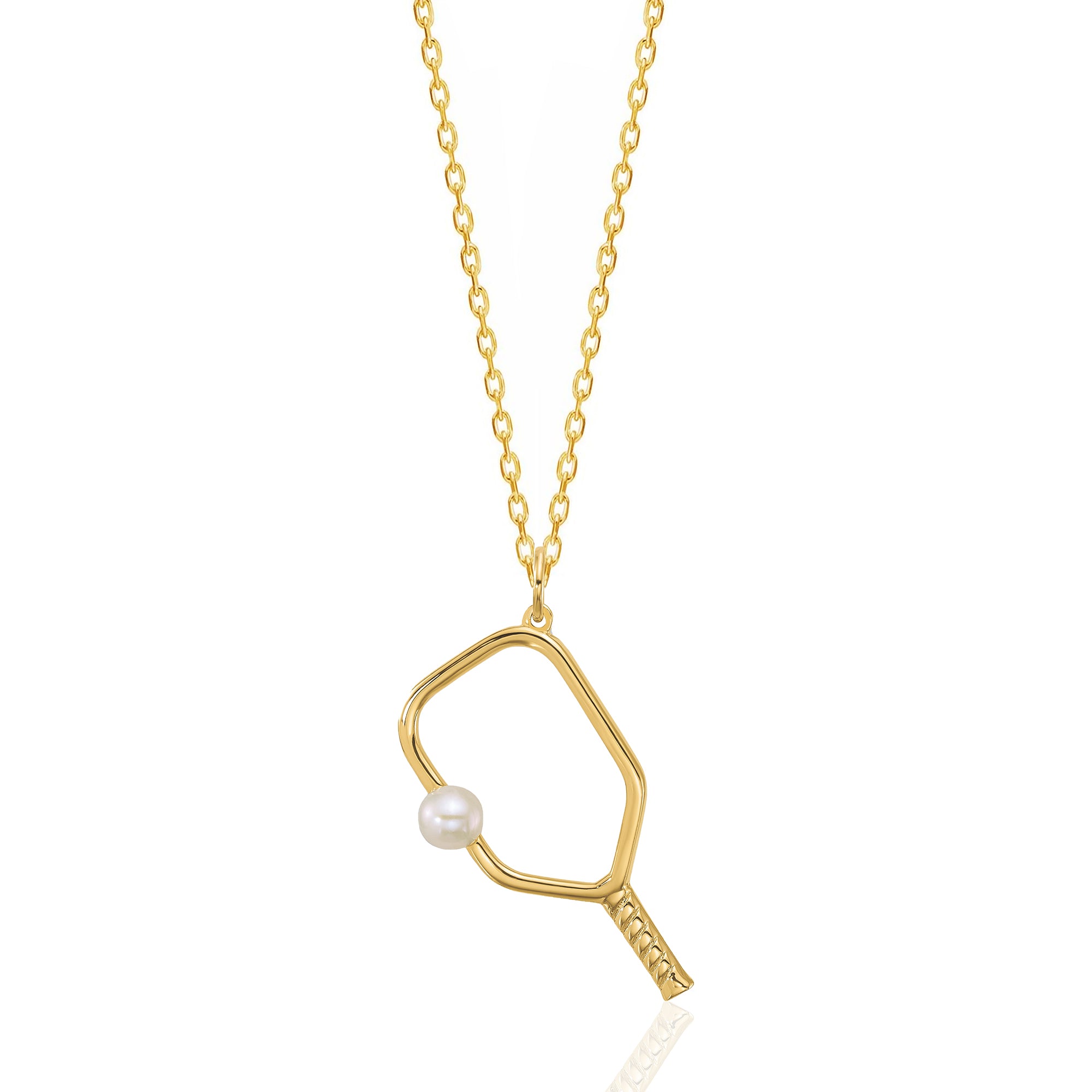 Celebrate your love for the game with this exquisite pickleball paddle charm. Made from 14K solid gold, this unique pendant features a minimalist paddle design complemented by a lustrous freshwater pearl accent, symbolizing elegance and sporty charm.