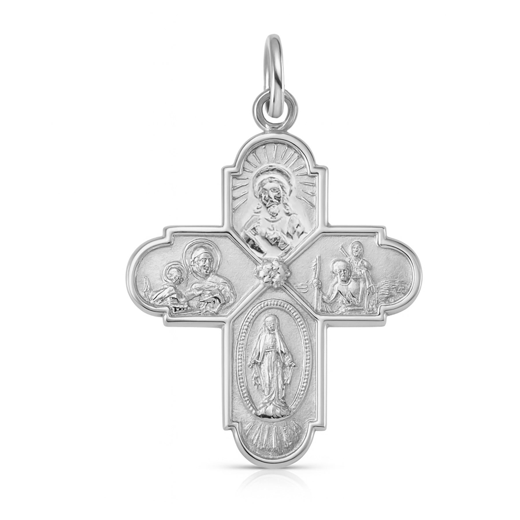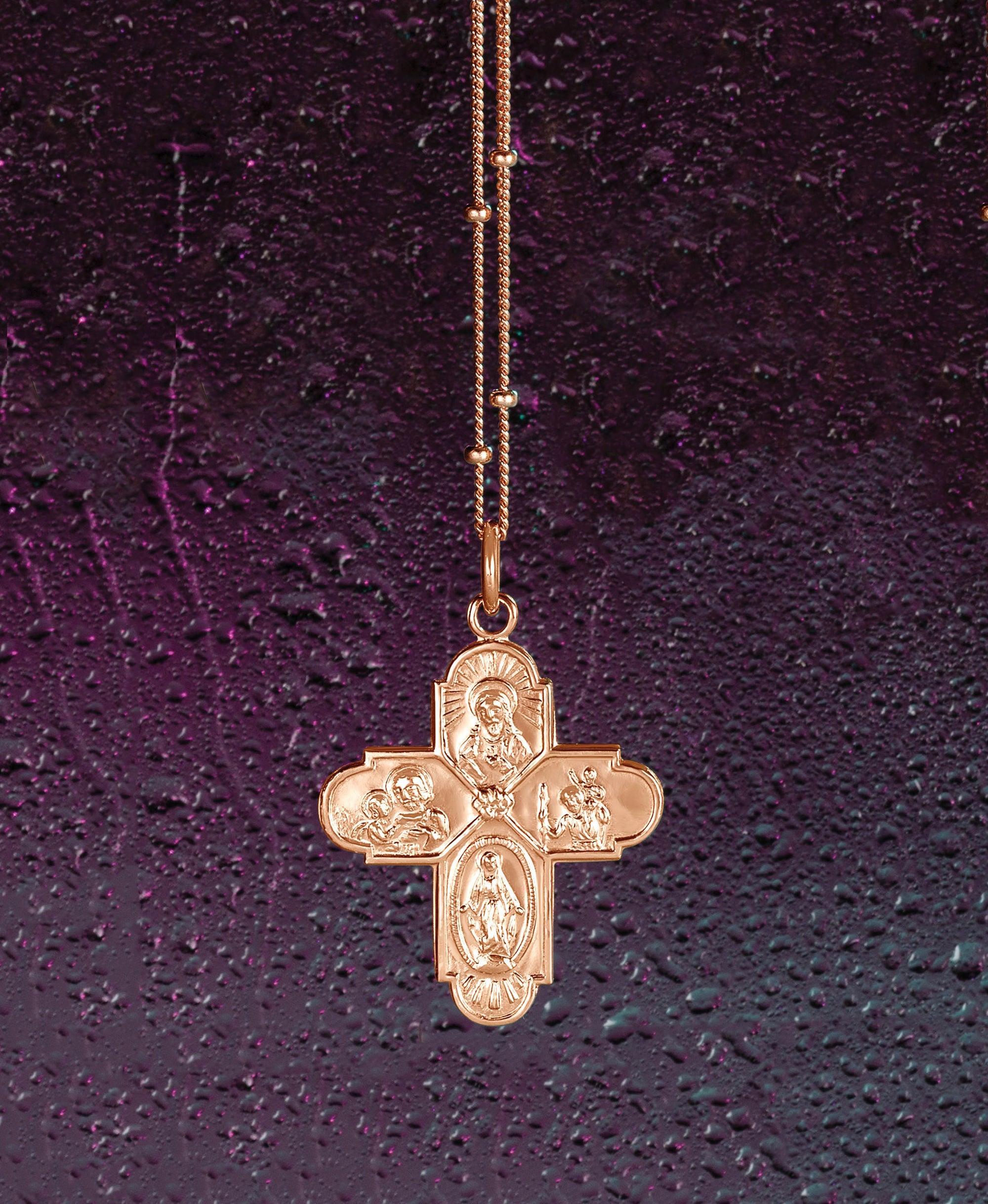 This 14K Solid Gold Four-Way Cross Pendant is a stunning piece of Christian jewelry, perfect for expressing your faith with elegance. The pendant features a beautifully crafted four-way cross design, symbolizing various aspects of the Catholic faith, including the Sacred Heart, St. Joseph, and the Miraculous Medal. Ideal as a meaningful gift for her, this religious necklace is not only a symbol of devotion but also a timeless accessory that can be cherished for years to come.
