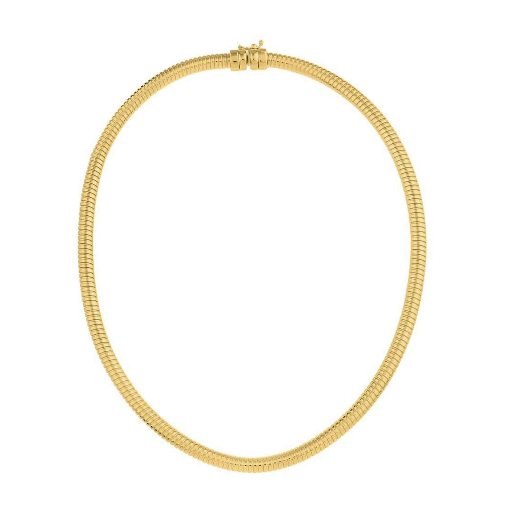 Crafted in solid 14K yellow gold, this elegant Tubogas necklace features a smooth flexible cobra coil design. Inspired by classic Italian gold craftsmanship, the tubogas construction offers exceptional flexibility, comfort, and durability.