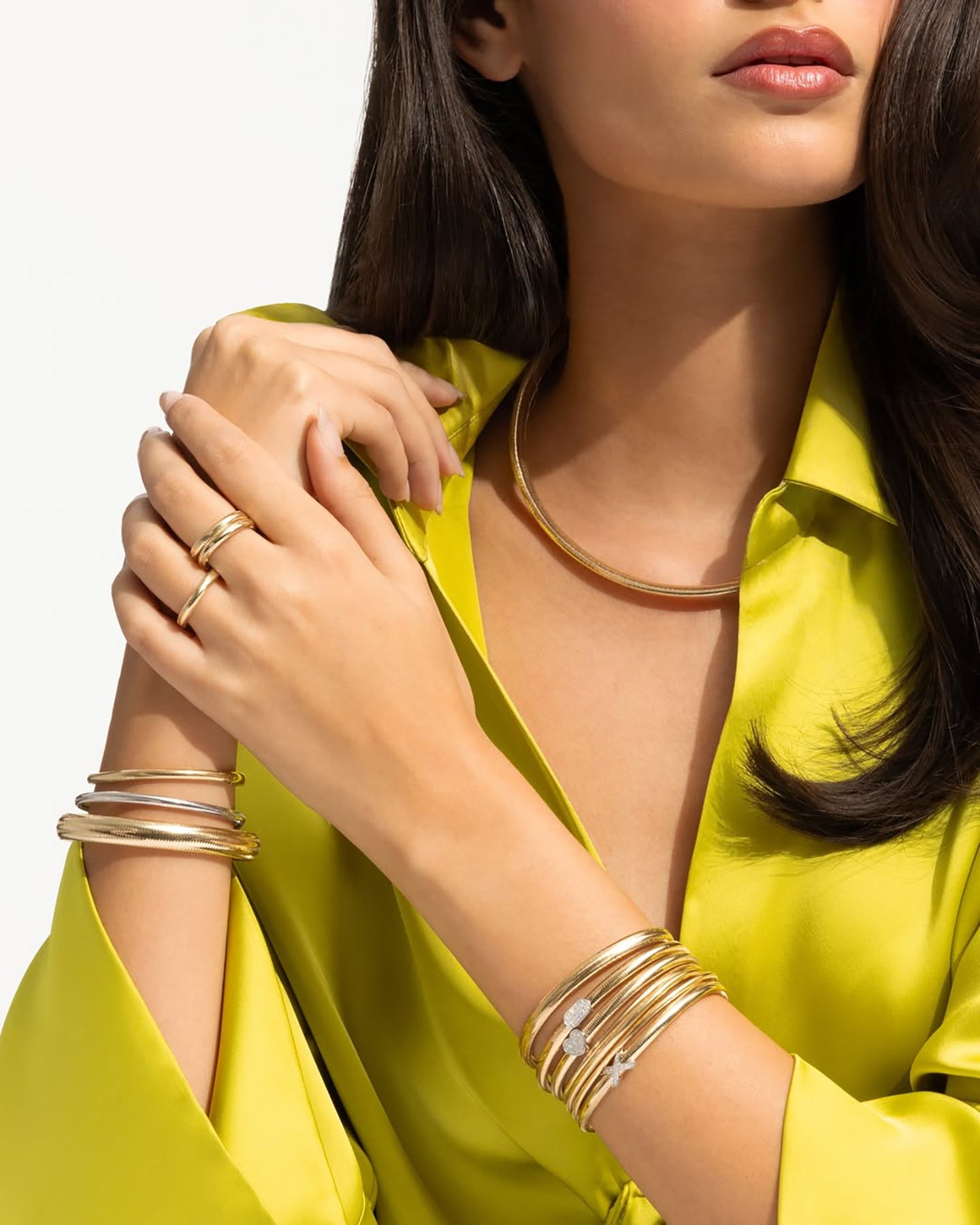 Polished to a radiant shine, this luxury gold coil necklace sits beautifully along the neckline, making it a striking standalone statement or a refined layering piece. A timeless essential, this graduated Italian gold cobra necklace transitions effortlessly from day to evening wear.