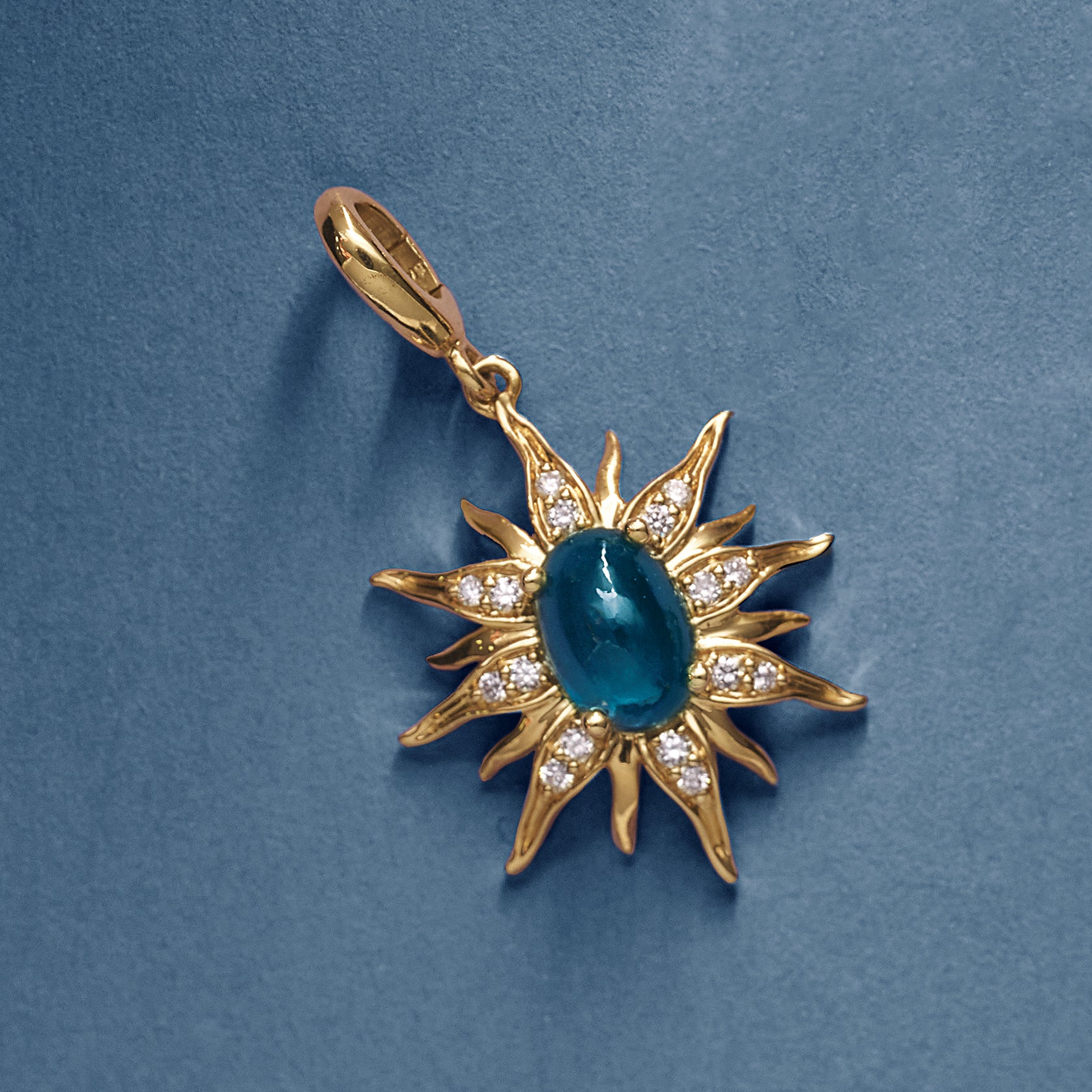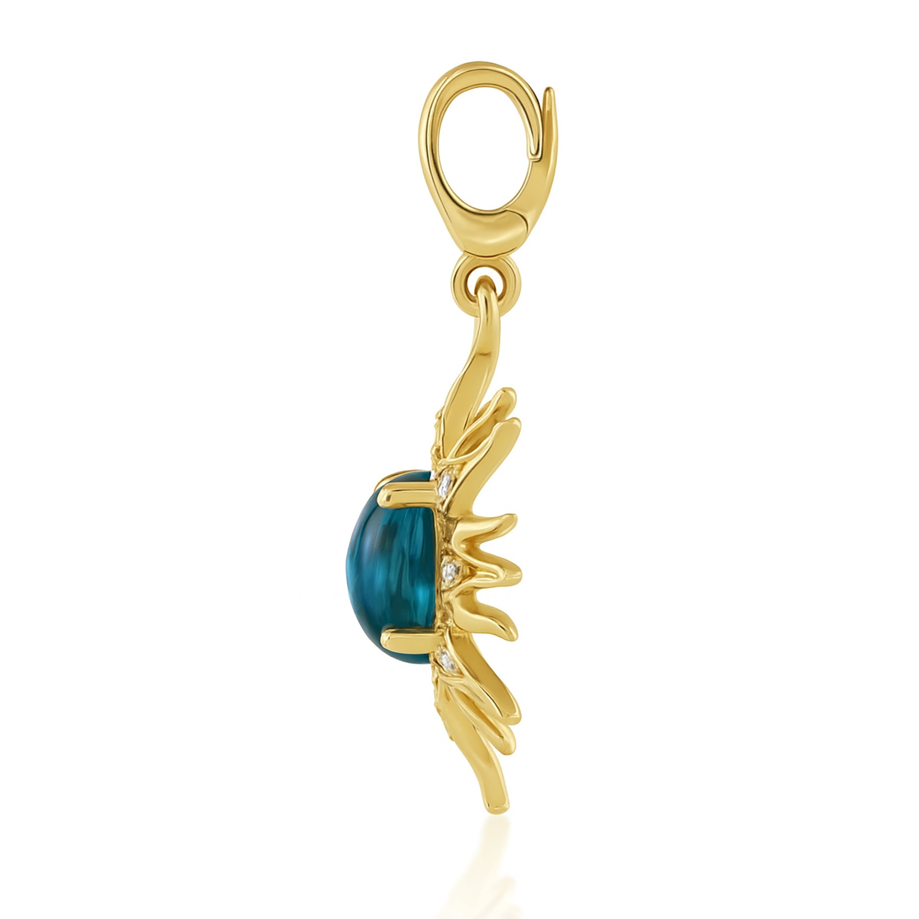 Illuminate your look with this 14K Solid Gold Removable Sunburst Charm Pendant, beautifully designed with an oval London Blue Topaz surrounded by brilliant natural diamonds. Crafted in fine solid gold, this charm radiates luxury, elegance, and celestial inspiration.