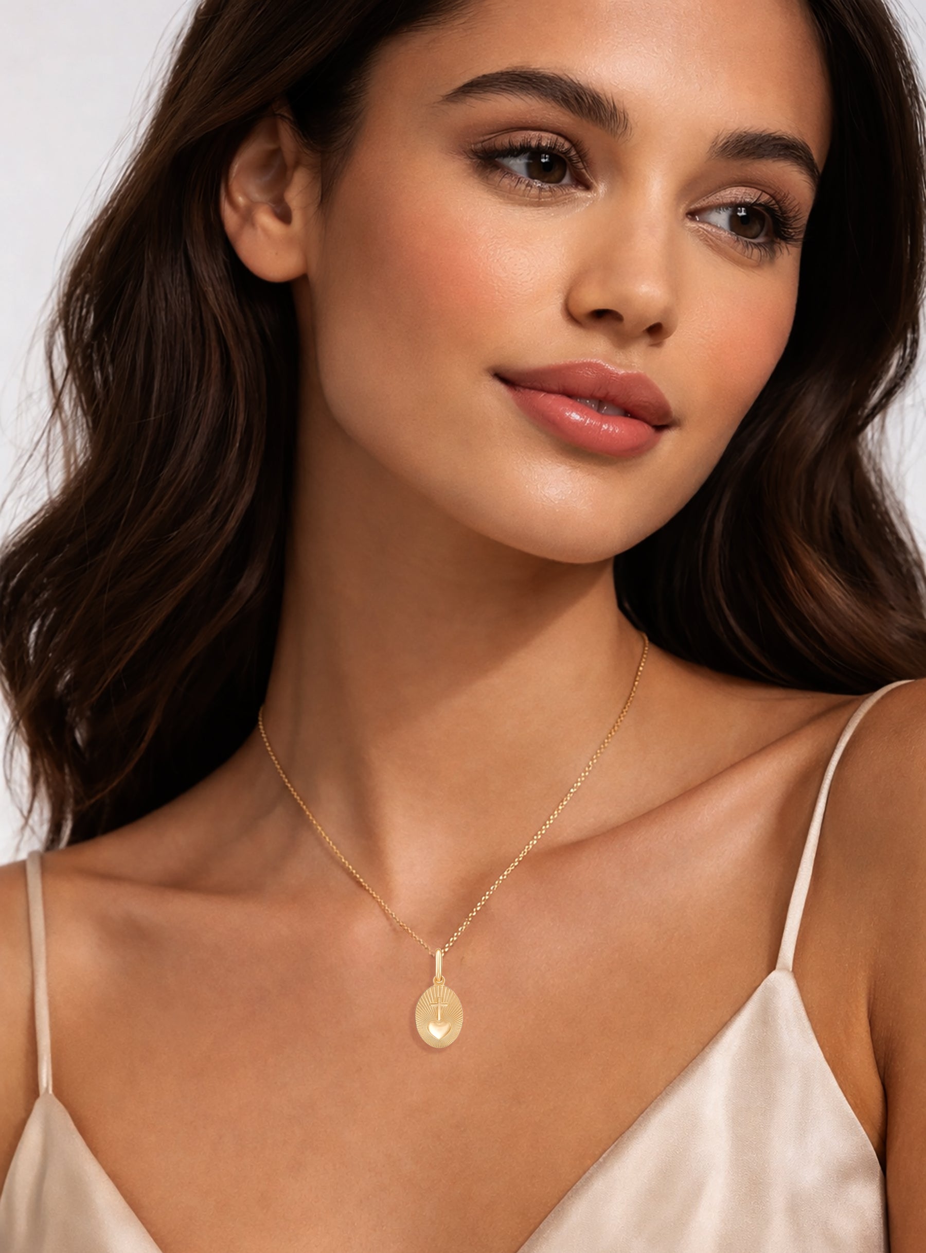 Celebrate faith and timeless elegance with this 14K Solid Gold Fluted Heart and Cross Medallion Pendant, a radiant symbol of devotion, protection, and spiritual strength.
