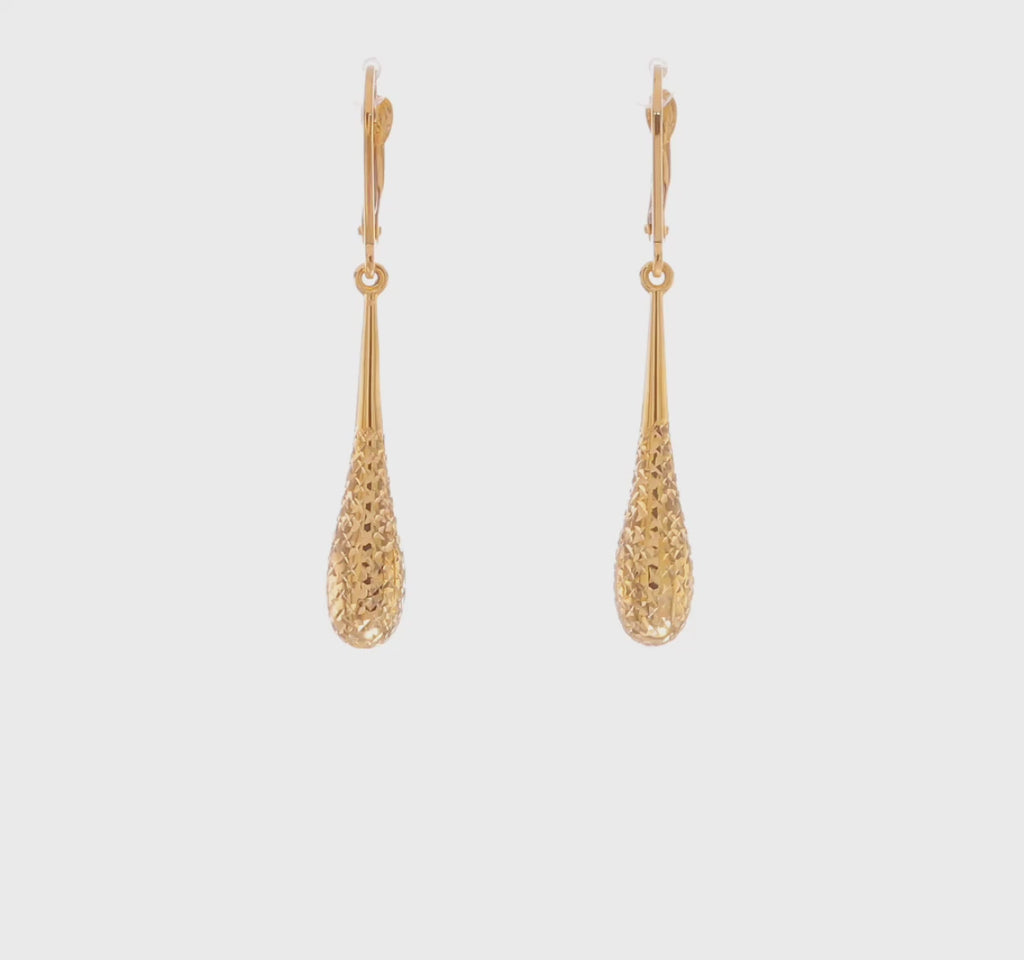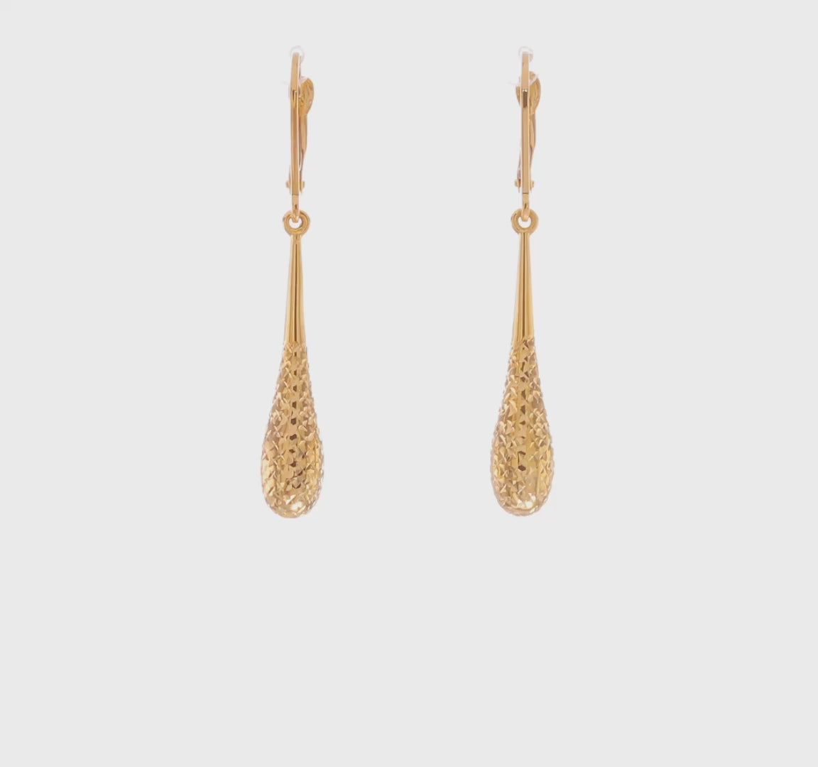 Elevate your look with the radiant brilliance of these 14K Solid Gold Diamond-Cut Teardrop Dangle Earrings — a breathtaking blend of timeless elegance and modern sophistication. Expertly crafted, each earring features a sculpted teardrop silhouette with a high-precision diamond-cut texture that catches and reflects light from every angle.