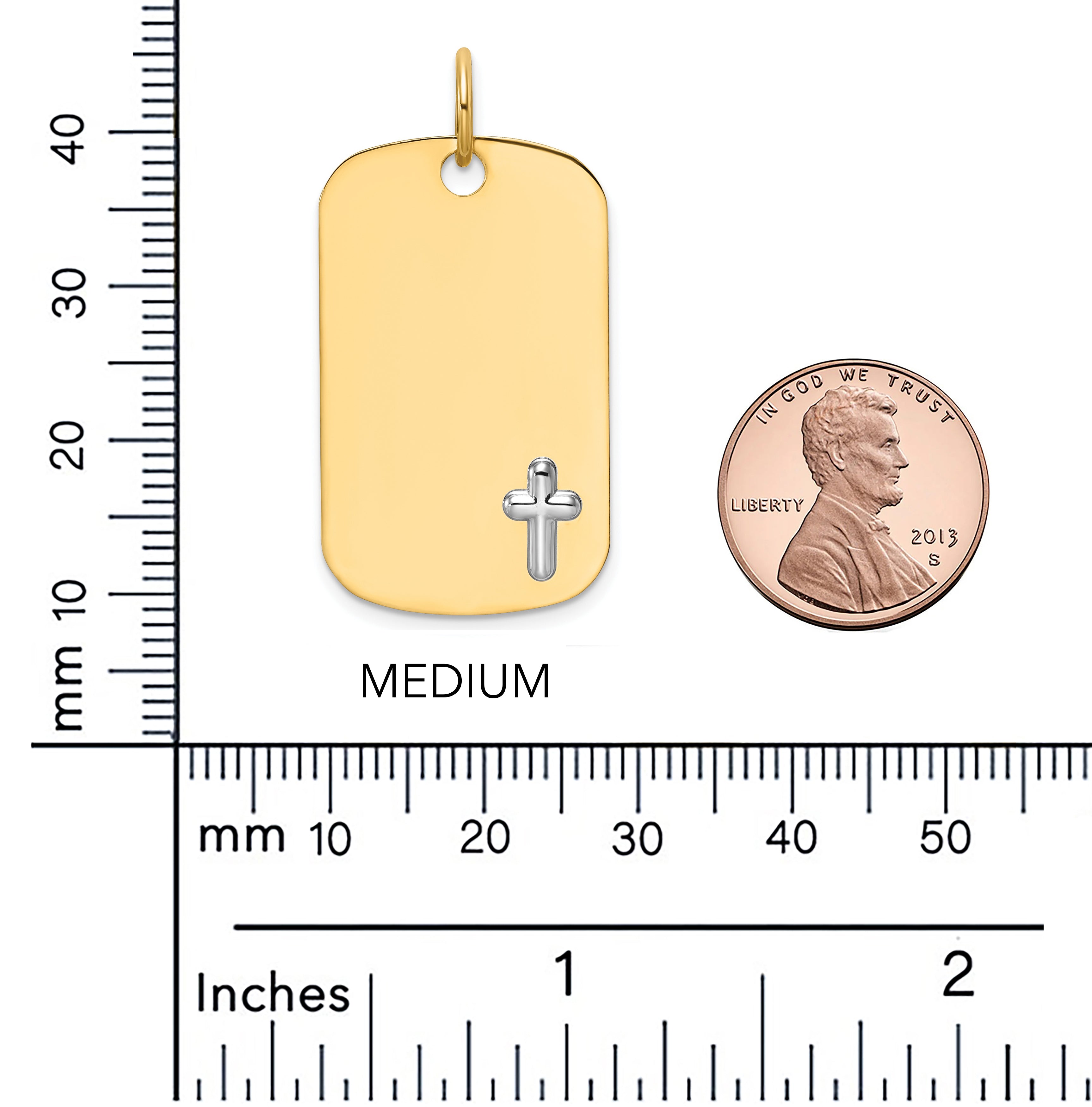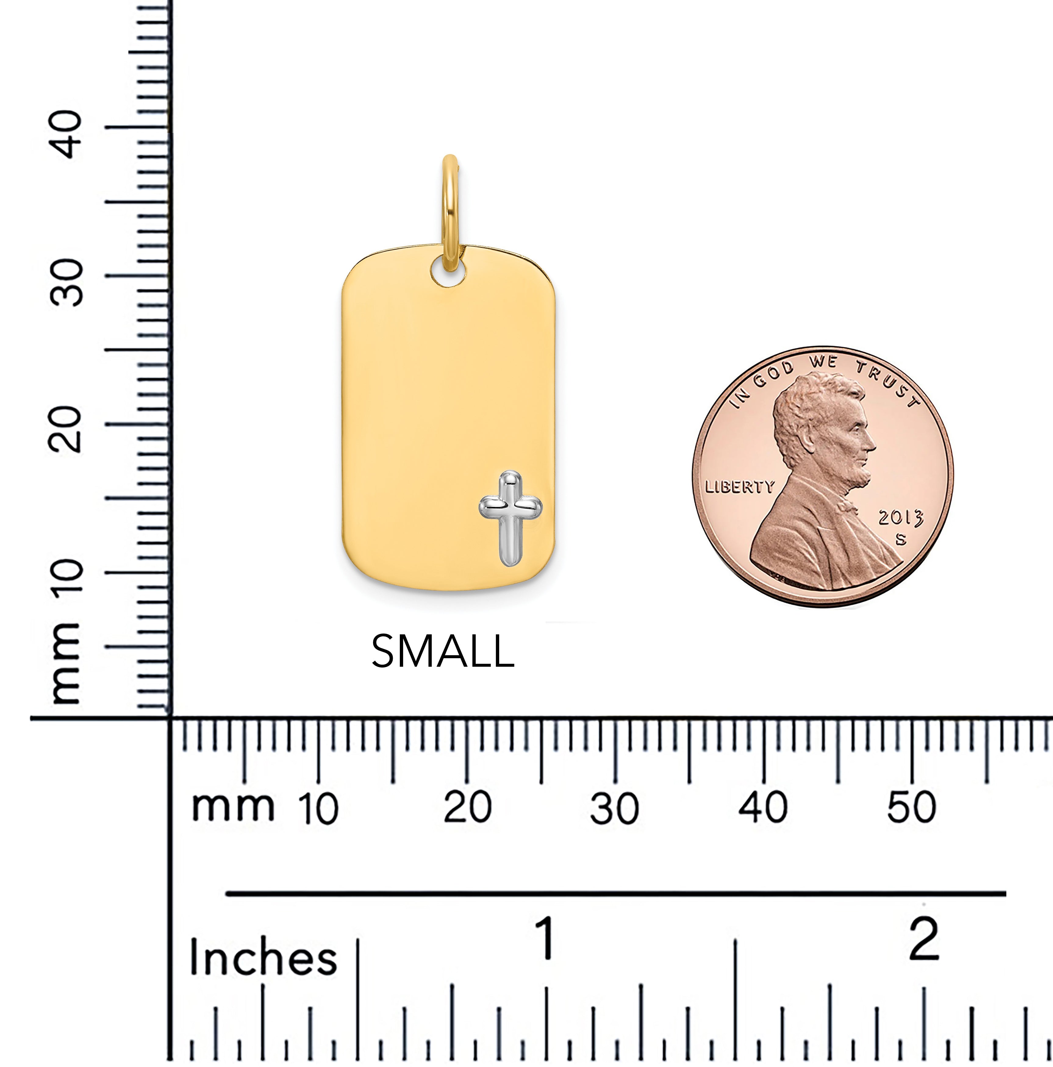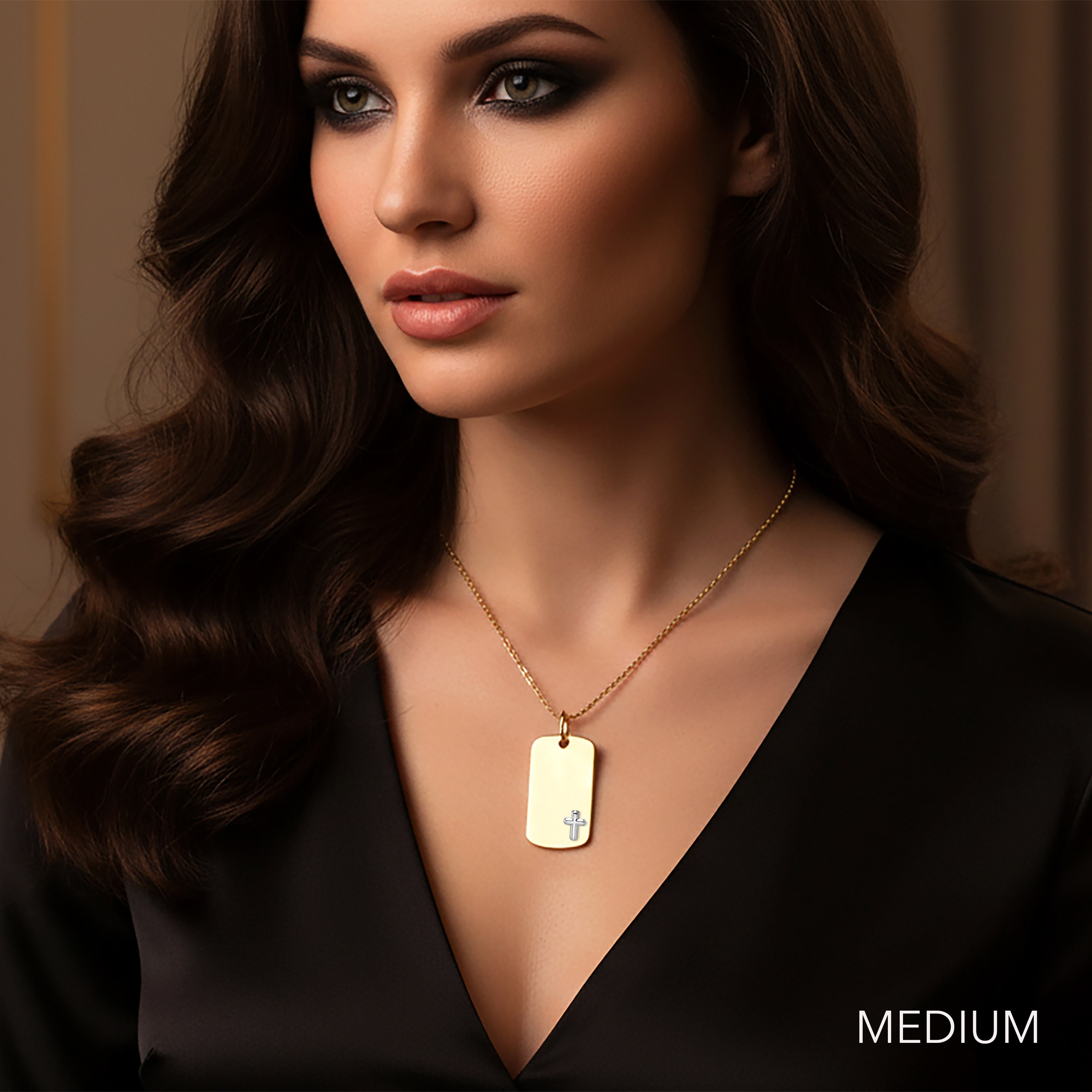 Honor faith and craftsmanship with our 14K Solid Gold Dog Tag Cross Pendant, designed in a sleek dog-tag silhouette and adorned with a small raised cross.
