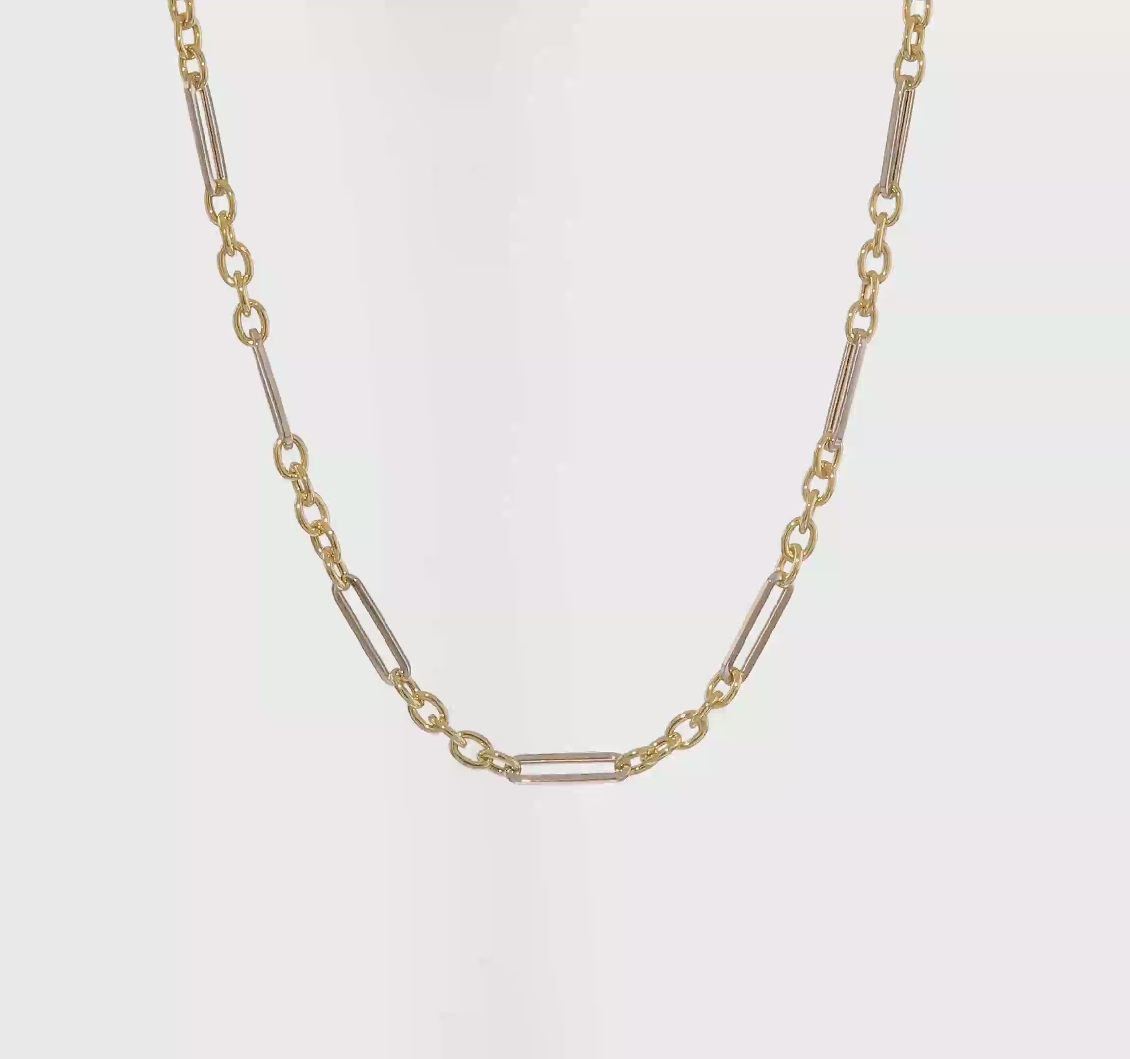 Elevate your look with our 14K Solid Gold Paperclip & Rolo Mixed Link Chain Necklace, masterfully made in Italy. This contemporary design combines sleek paperclip links with classic rolo links, creating a luxurious texture and balance that complements any outfit—from casual to couture.