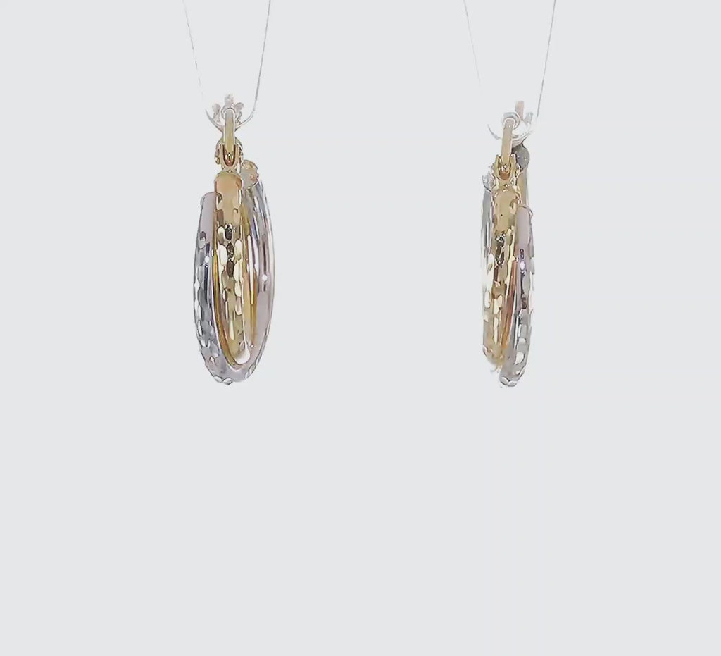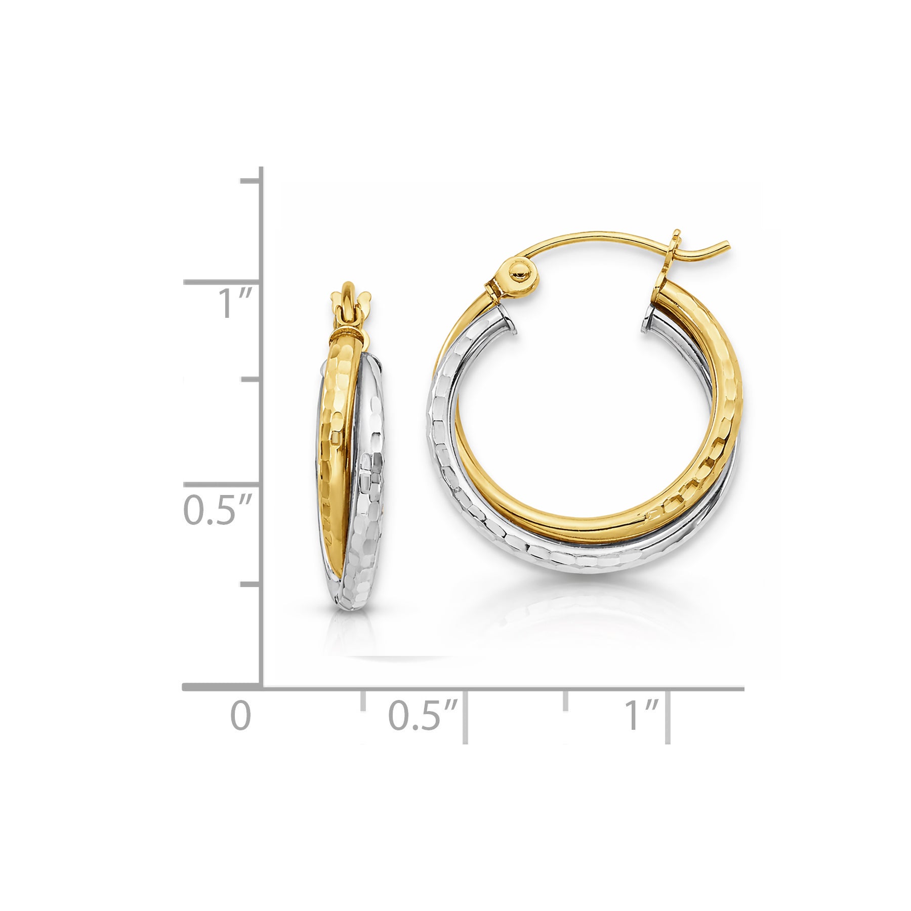 Expertly made from genuine 10K solid gold, these earrings feature a hammered finish that enhances their rich gold tones and luxurious shine. The two-tone design allows them to pair effortlessly with both yellow and white gold jewelry, making them a must-have staple in any fine jewelry collection.