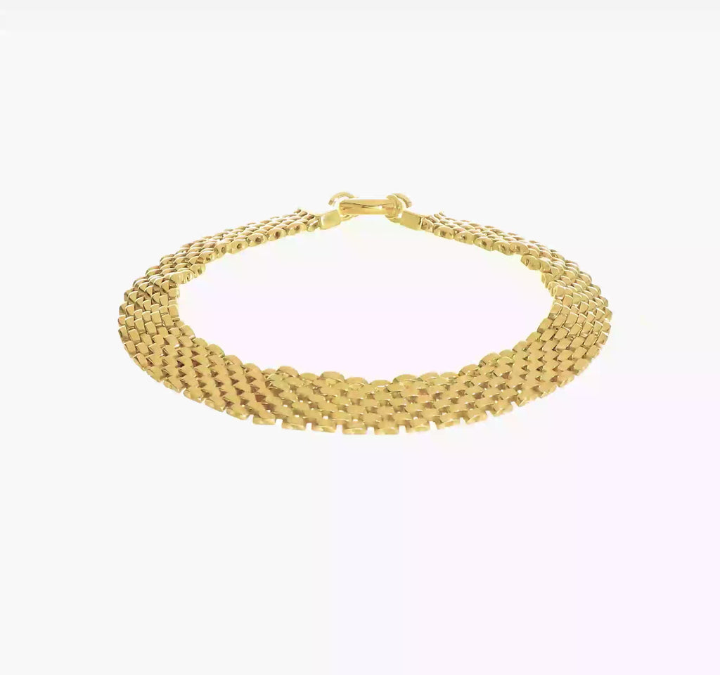 With its 8.4mm width, the bracelet delivers a commanding presence while maintaining a smooth, silky feel against the skin. The high-polish finish enhances the bracelet’s rich golden glow, making it a standout accessory worn alone or layered with your favorite pieces.